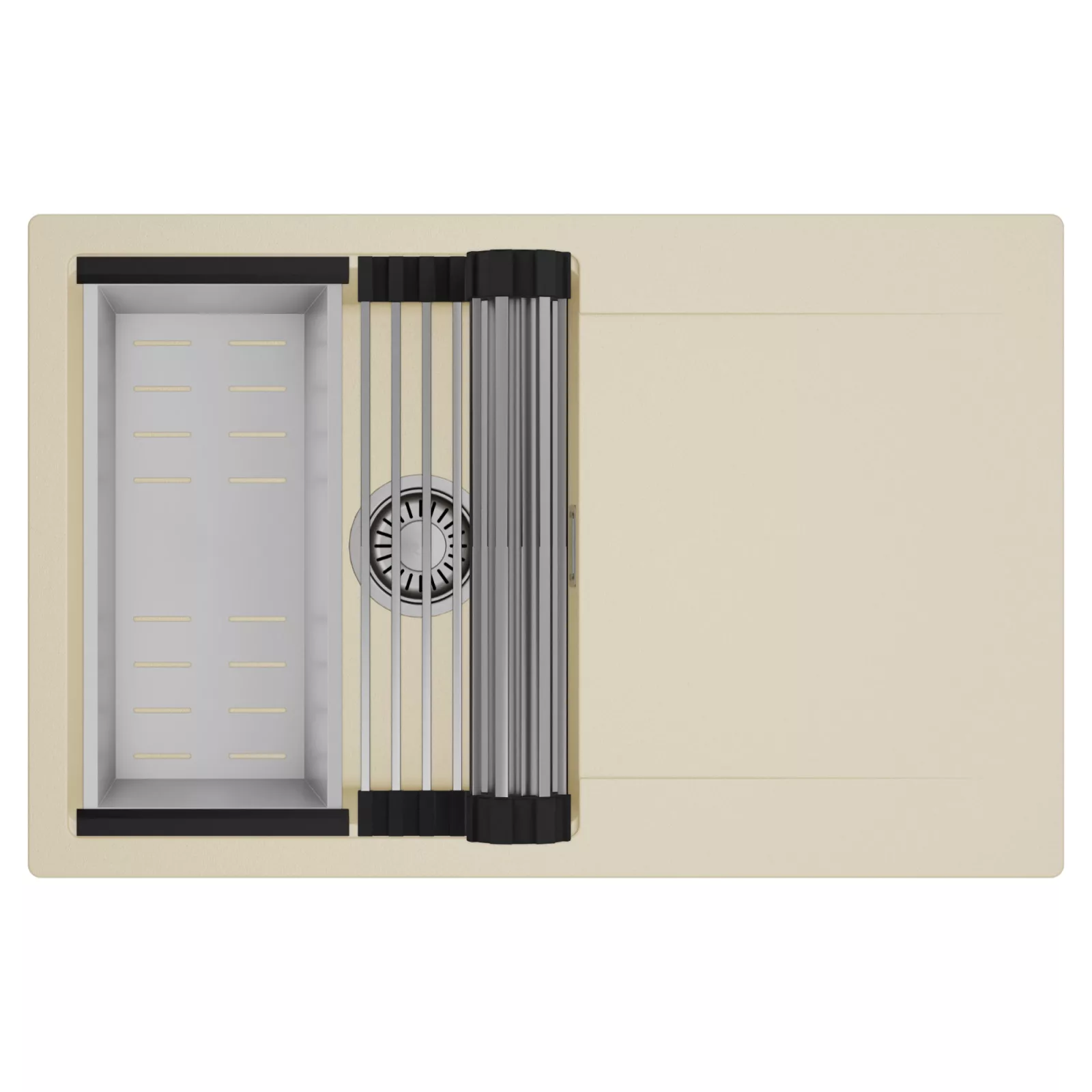 HD Onyx Beige 78 egymedencés mosogatótálca szett, csepegtetőráccsal és kosárral, soft bézs