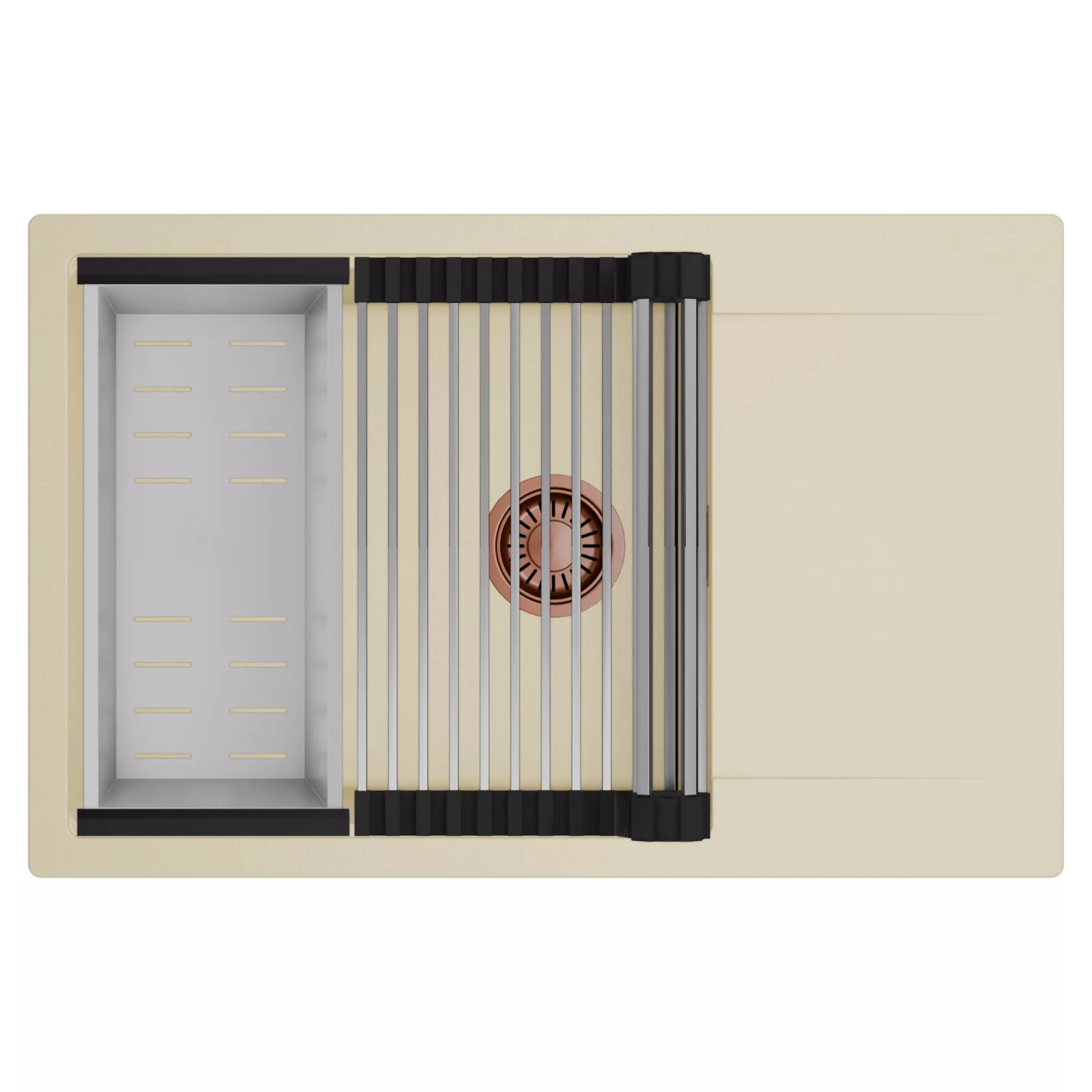 HD Onyx Beige 78-XL egymedencés mosogatótálca szett, csepegtetőráccsal és kosárral, soft bézs