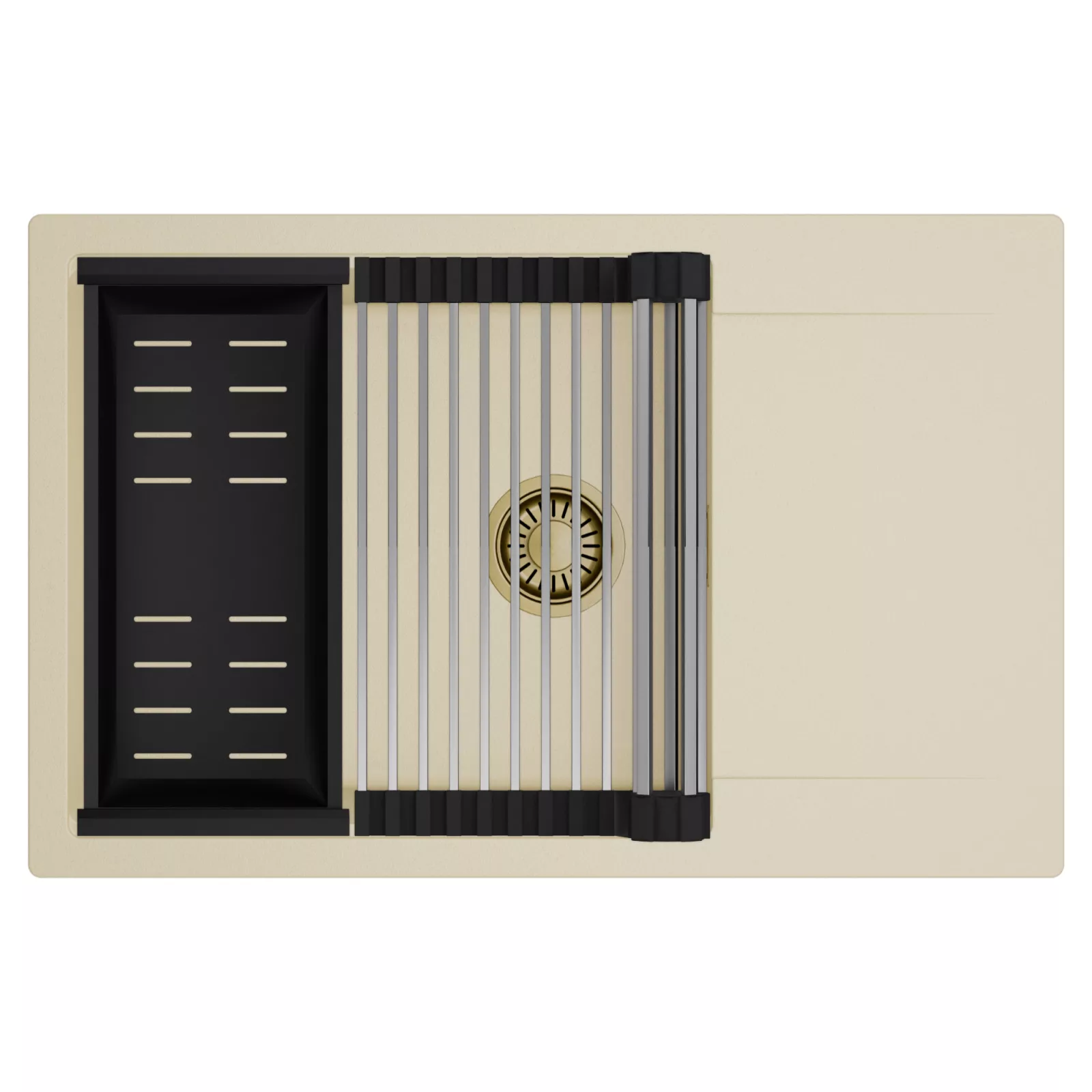 HD Onyx Beige 78-XL egymedencés mosogatótálca szett, csepegtetőráccsal és kosárral, soft bézs
