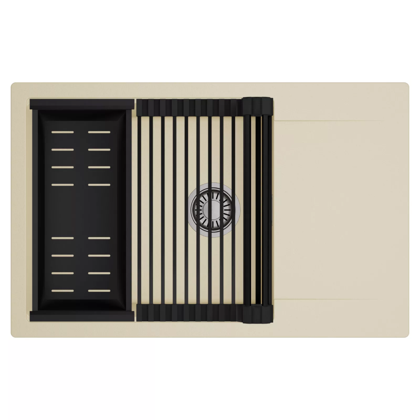 HD Onyx Beige 78-XL egymedencés mosogatótálca szett, csepegtetőráccsal és kosárral, soft bézs