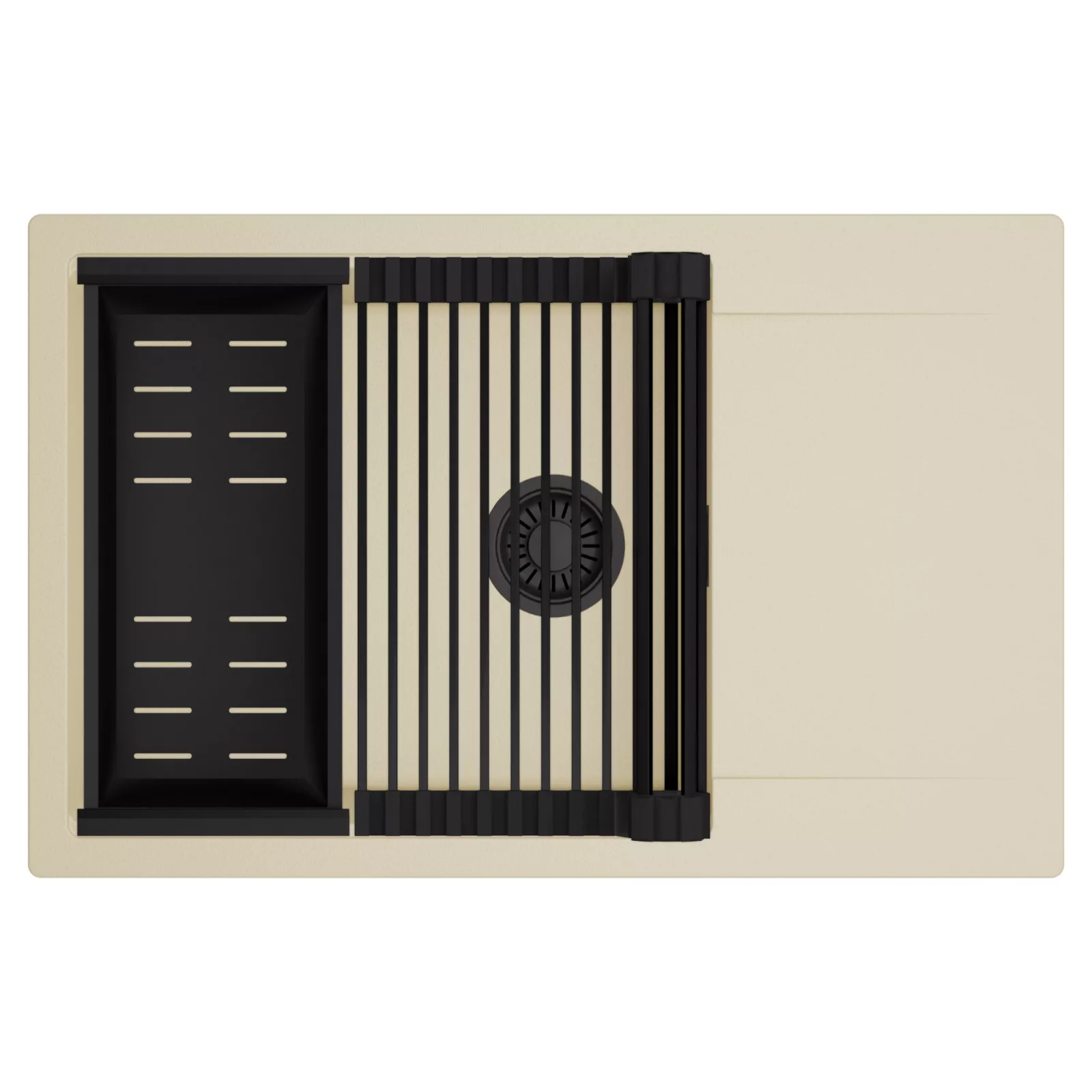 HD Onyx Beige 78-XL egymedencés mosogatótálca szett, csepegtetőráccsal és kosárral, soft bézs