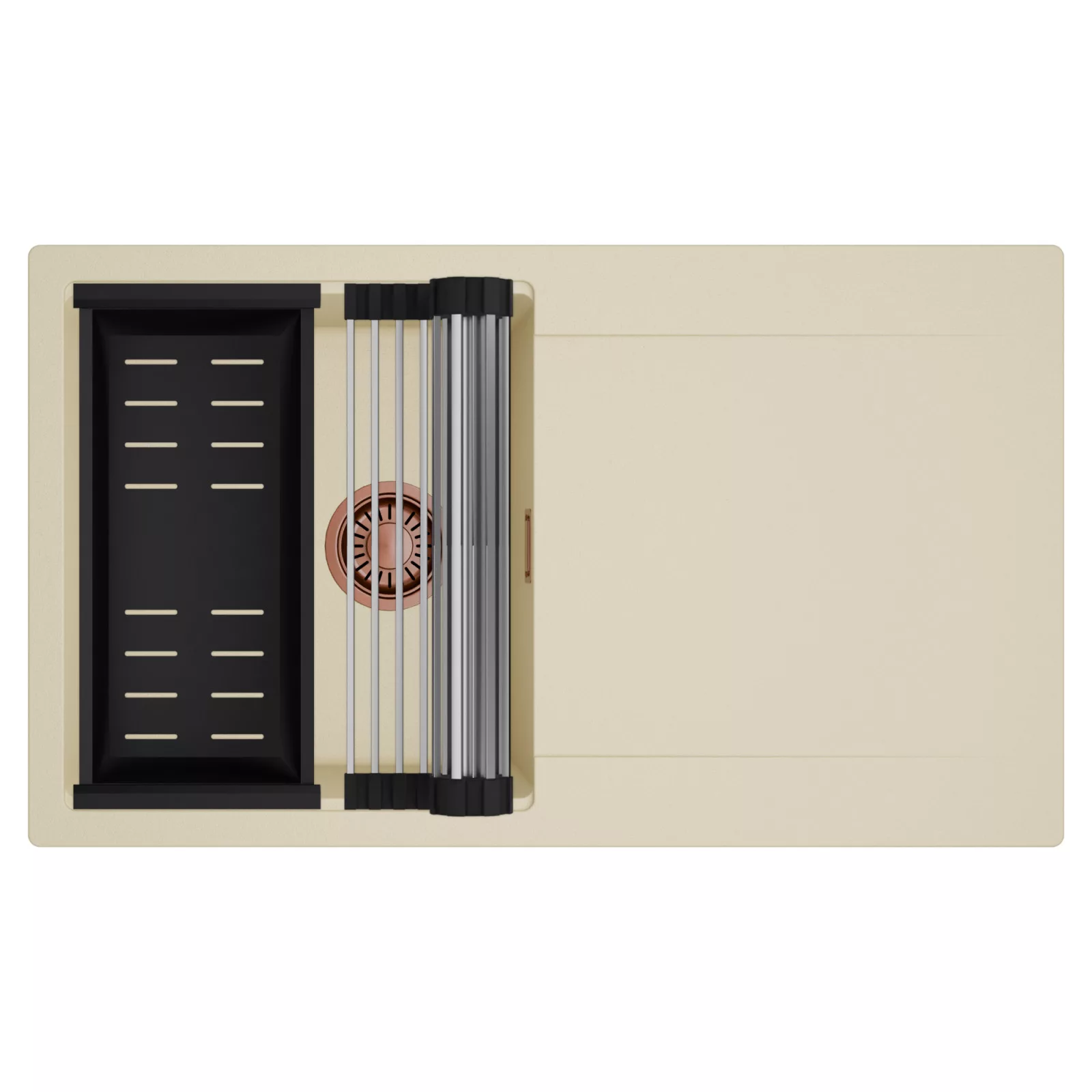 HD Onyx Beige 86 egymedencés mosogatótálca szett, csepegtetőráccsal és kosárral, soft bézs