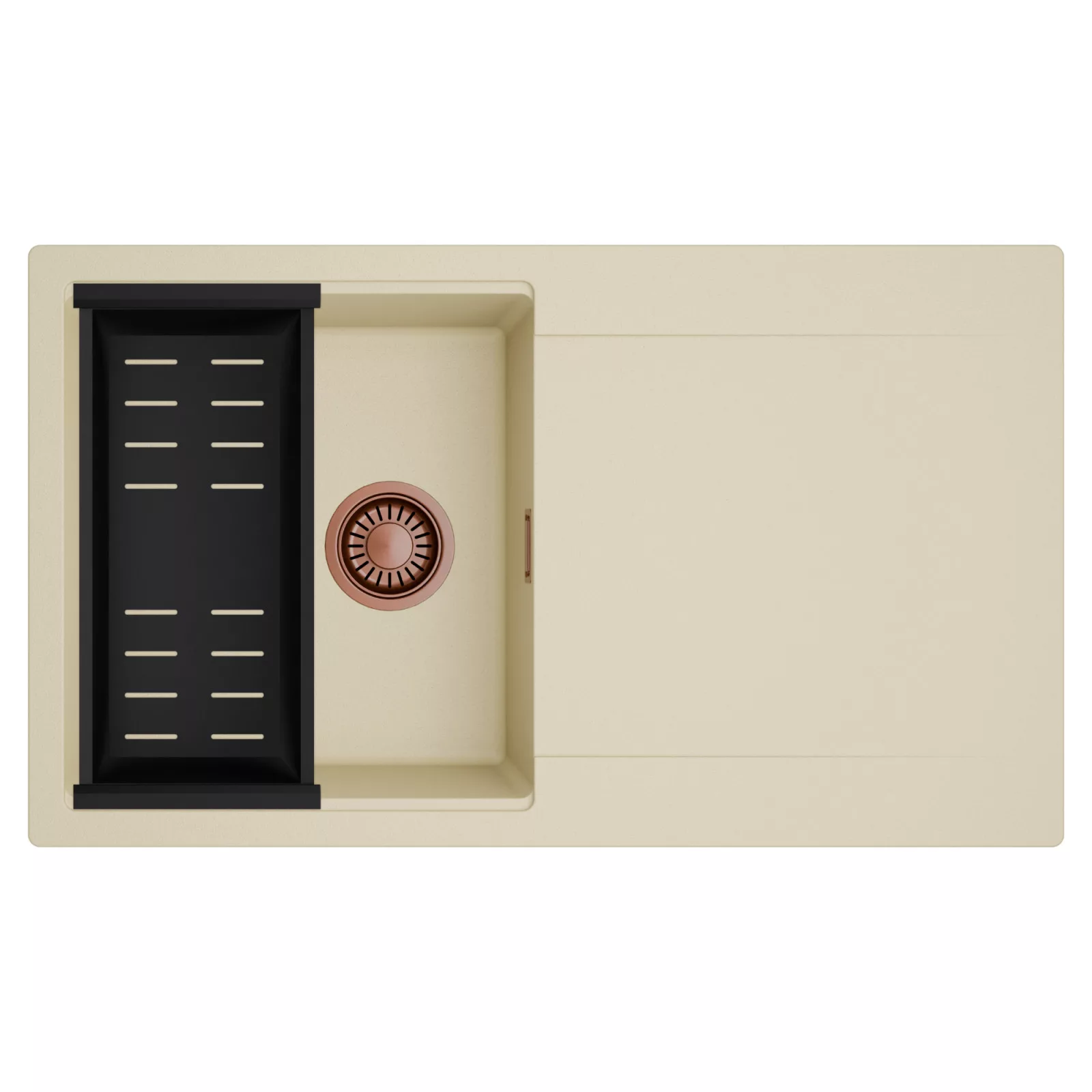 HD Onyx Beige 86 egymedencés mosogatótálca szett, csepegtetőkosárral, soft bézs