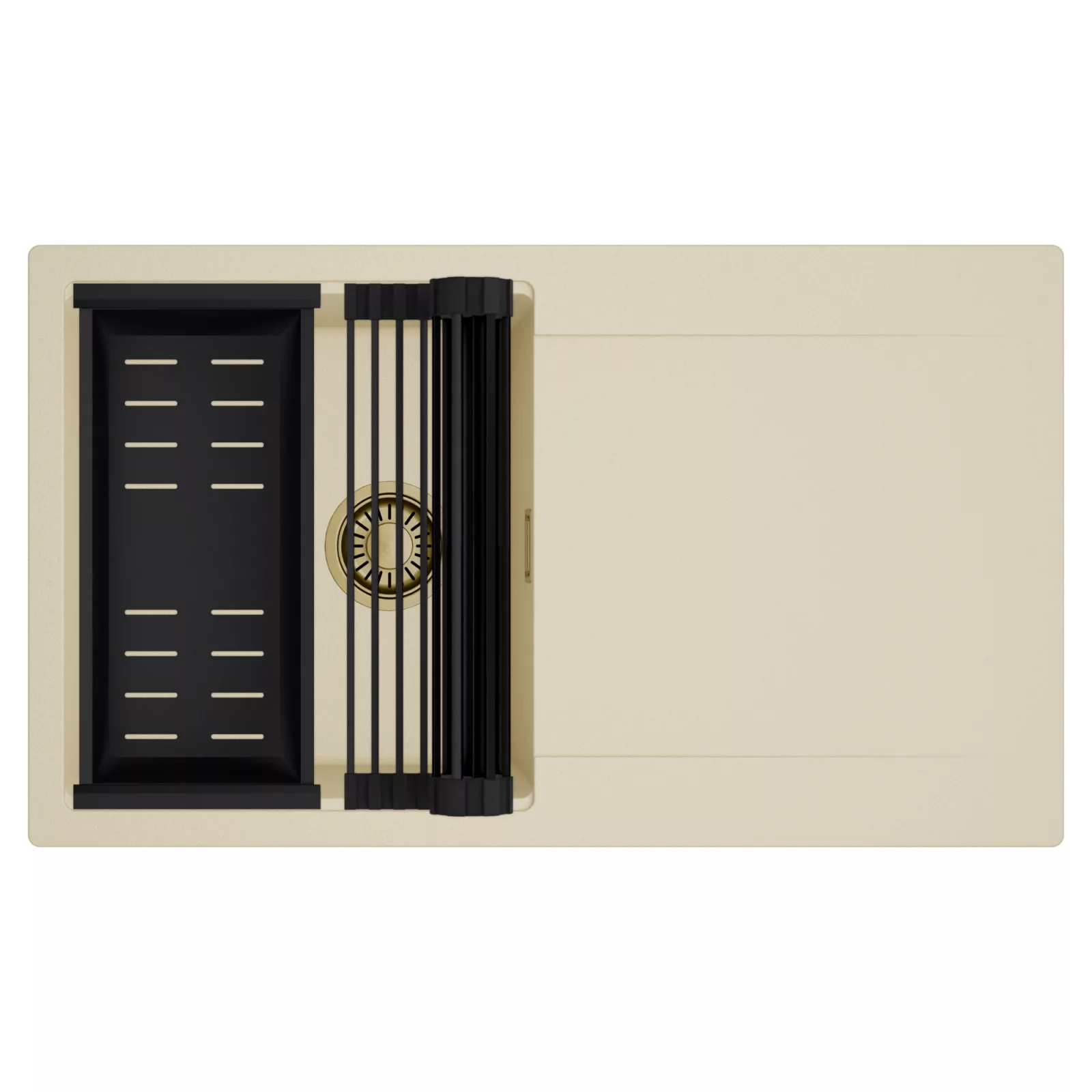 HD Onyx Beige 86 egymedencés mosogatótálca szett, csepegtetőráccsal és kosárral, soft bézs