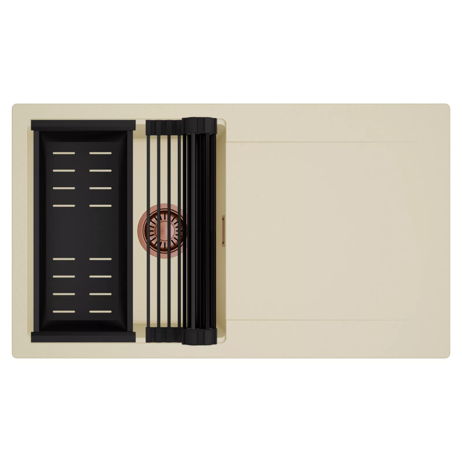 HD Onyx Beige 86 egymedencés mosogatótálca szett, csepegtetőráccsal és kosárral, soft bézs