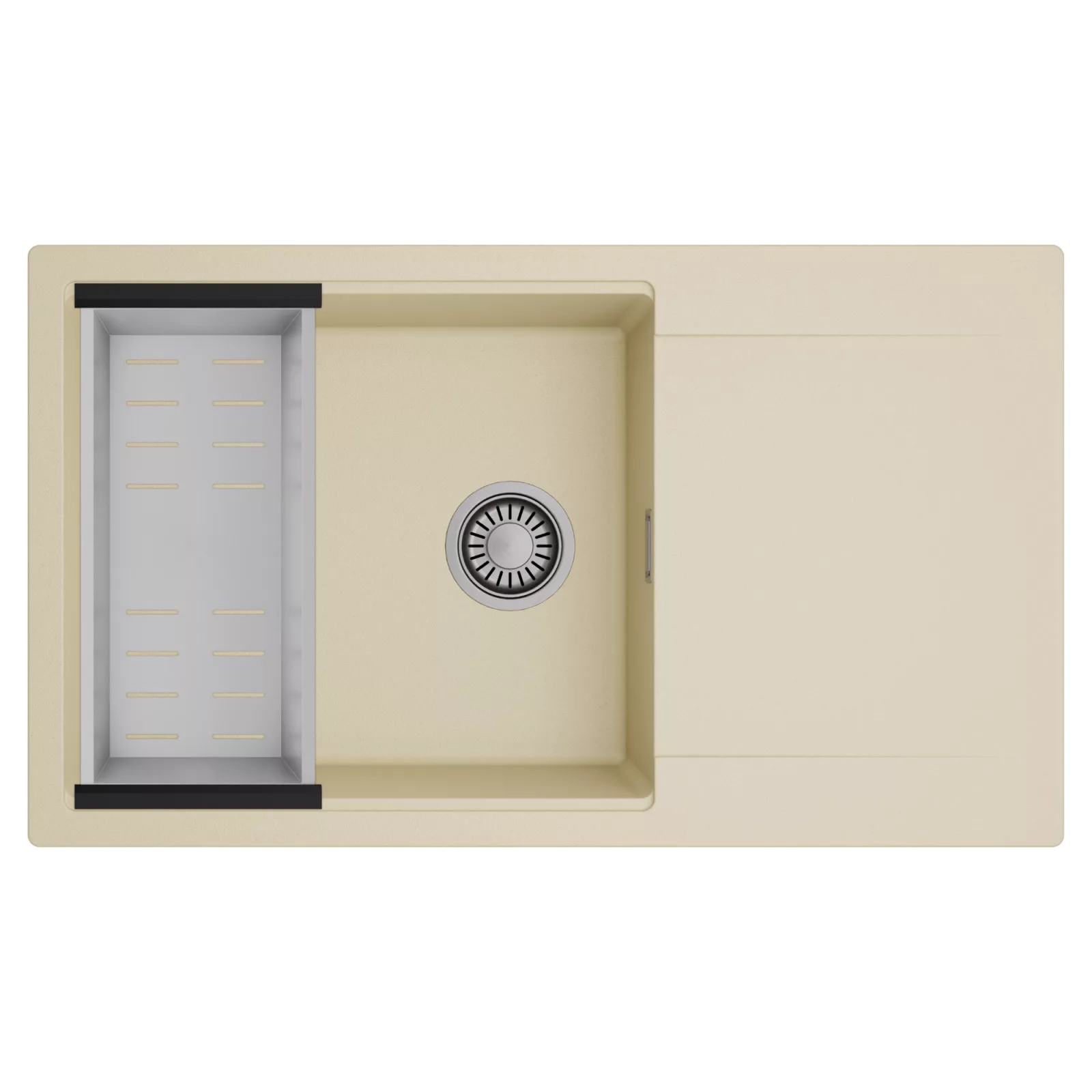 HD Onyx Beige 86-XL egymedencés mosogatótálca szett, csepegtetőkosárral, soft bézs