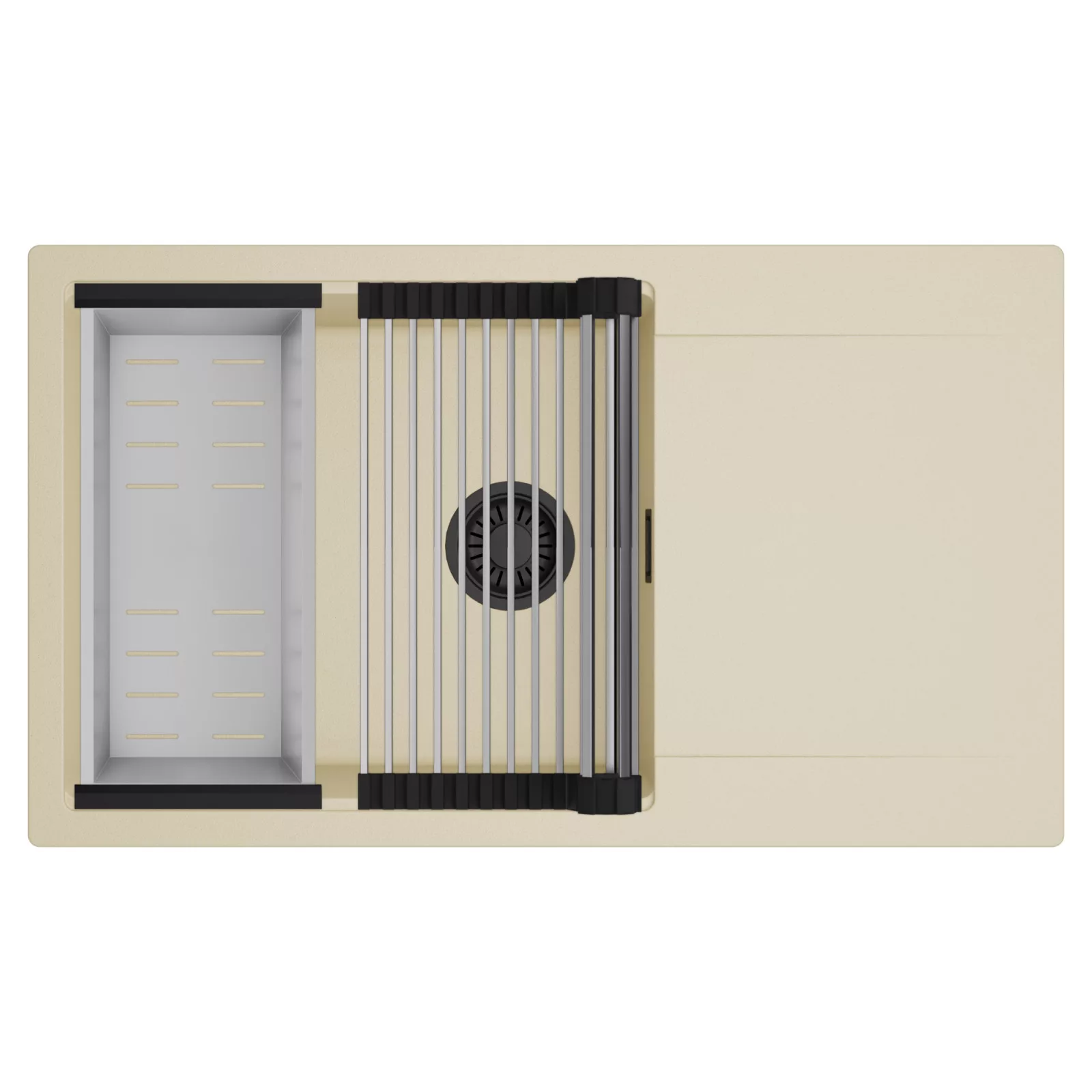 HD Onyx Beige 86-XL egymedencés mosogatótálca szett, csepegtetőráccsal és kosárral, soft bézs