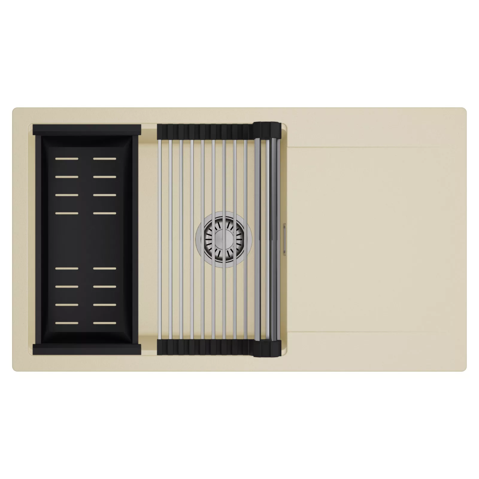 HD Onyx Beige 86-XL egymedencés mosogatótálca szett, csepegtetőráccsal és kosárral, soft bézs