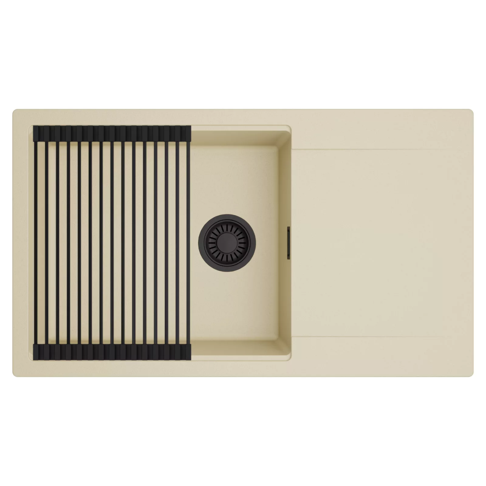 HD Onyx Beige 86-XL egymedencés mosogatótálca szett, csepegtetőráccsal, soft bézs
