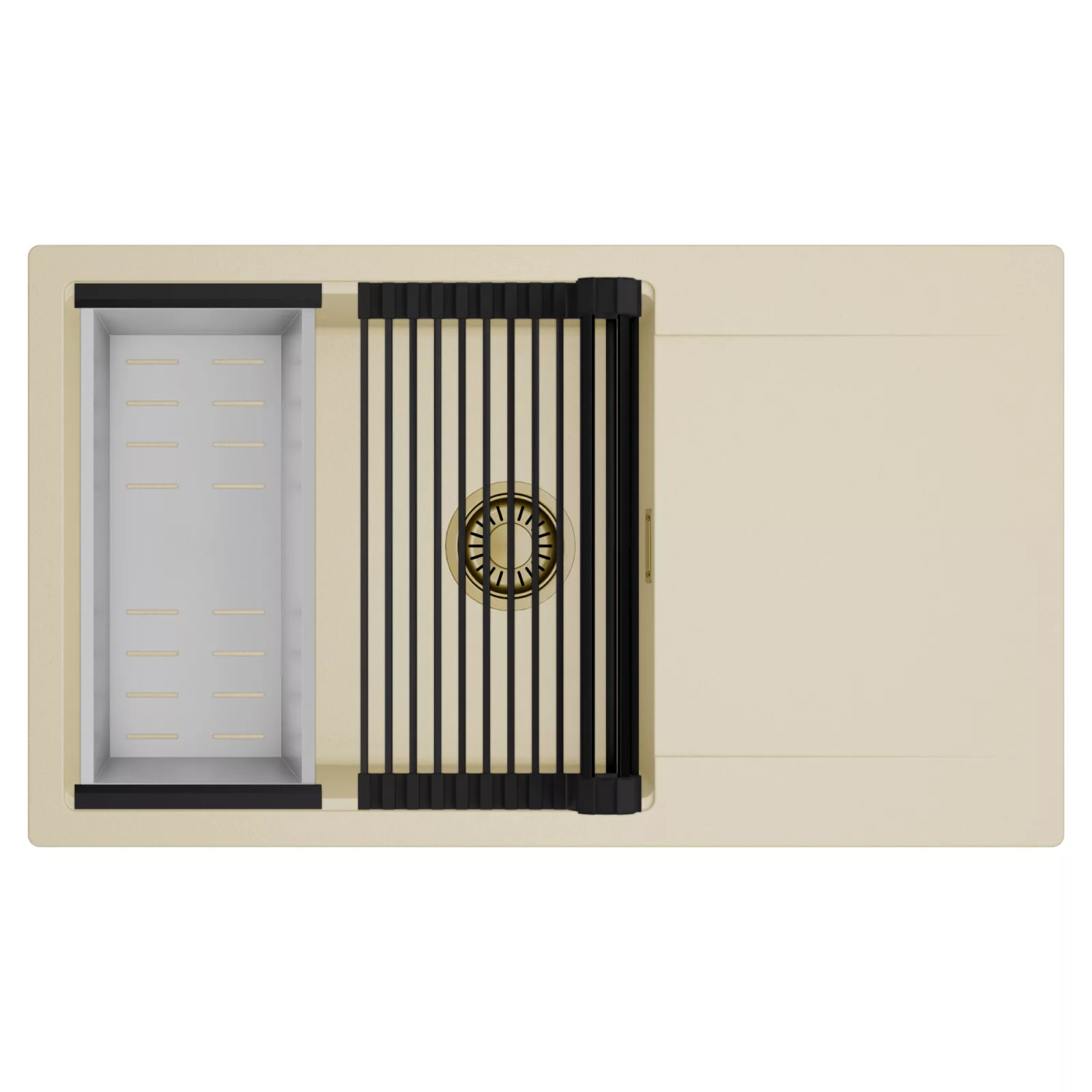 HD Onyx Beige 86-XL egymedencés mosogatótálca szett, csepegtetőráccsal és kosárral, soft bézs