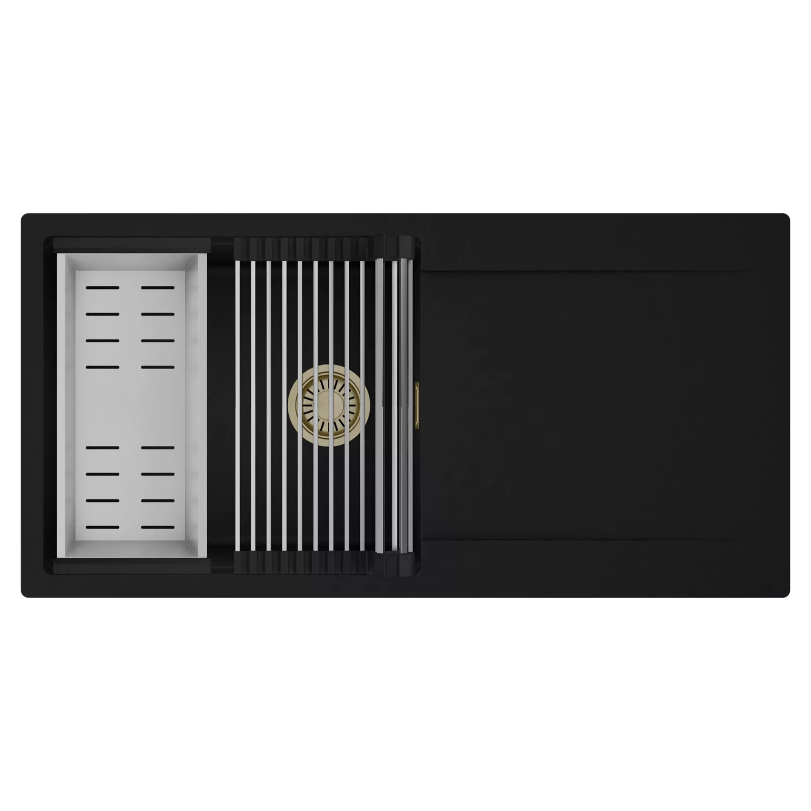 HD Onyx 100 egymedencés mosogatótálca szett, csepegtetőráccsal és kosárral, matt fekete