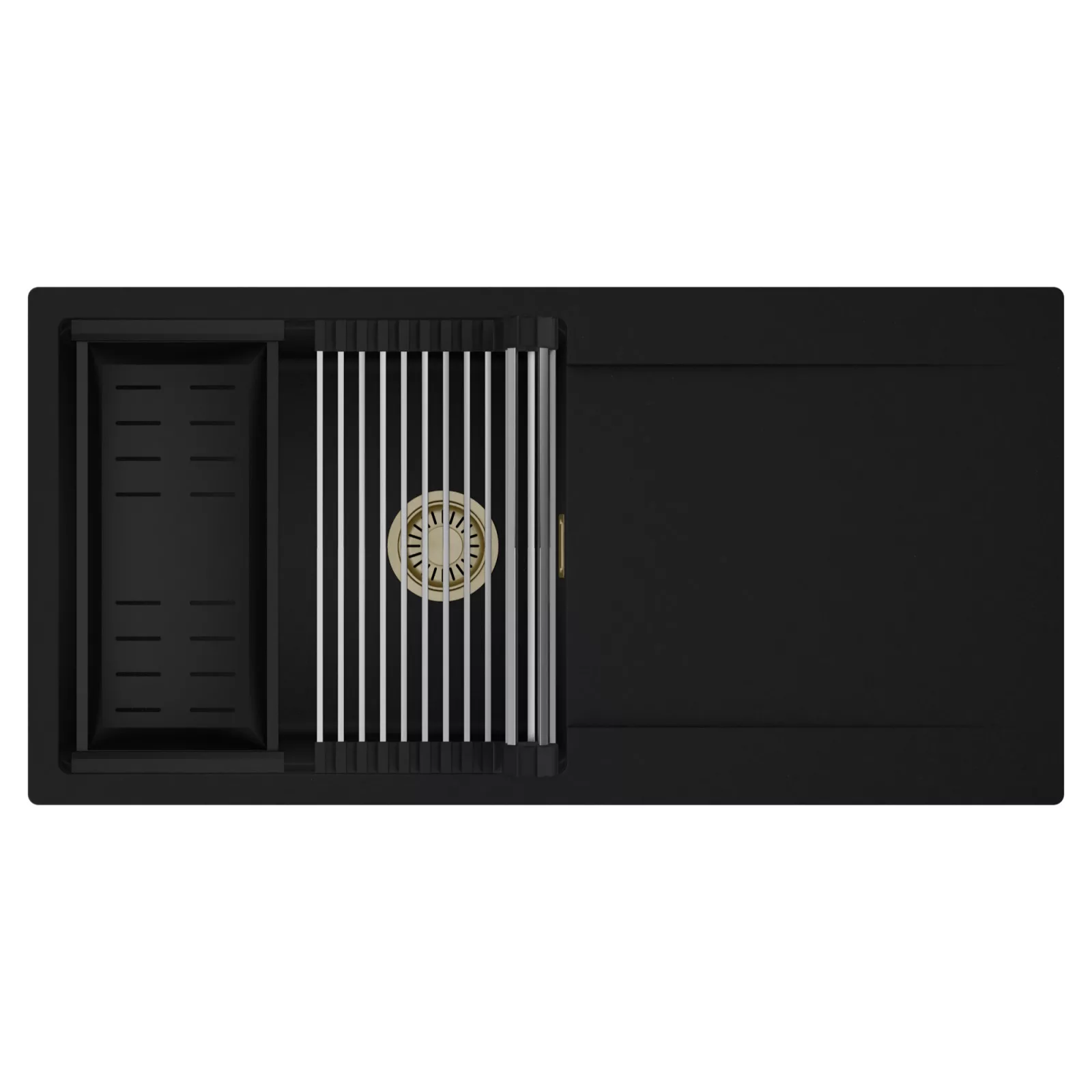 HD Onyx 100 egymedencés mosogatótálca szett, csepegtetőráccsal és kosárral, matt fekete