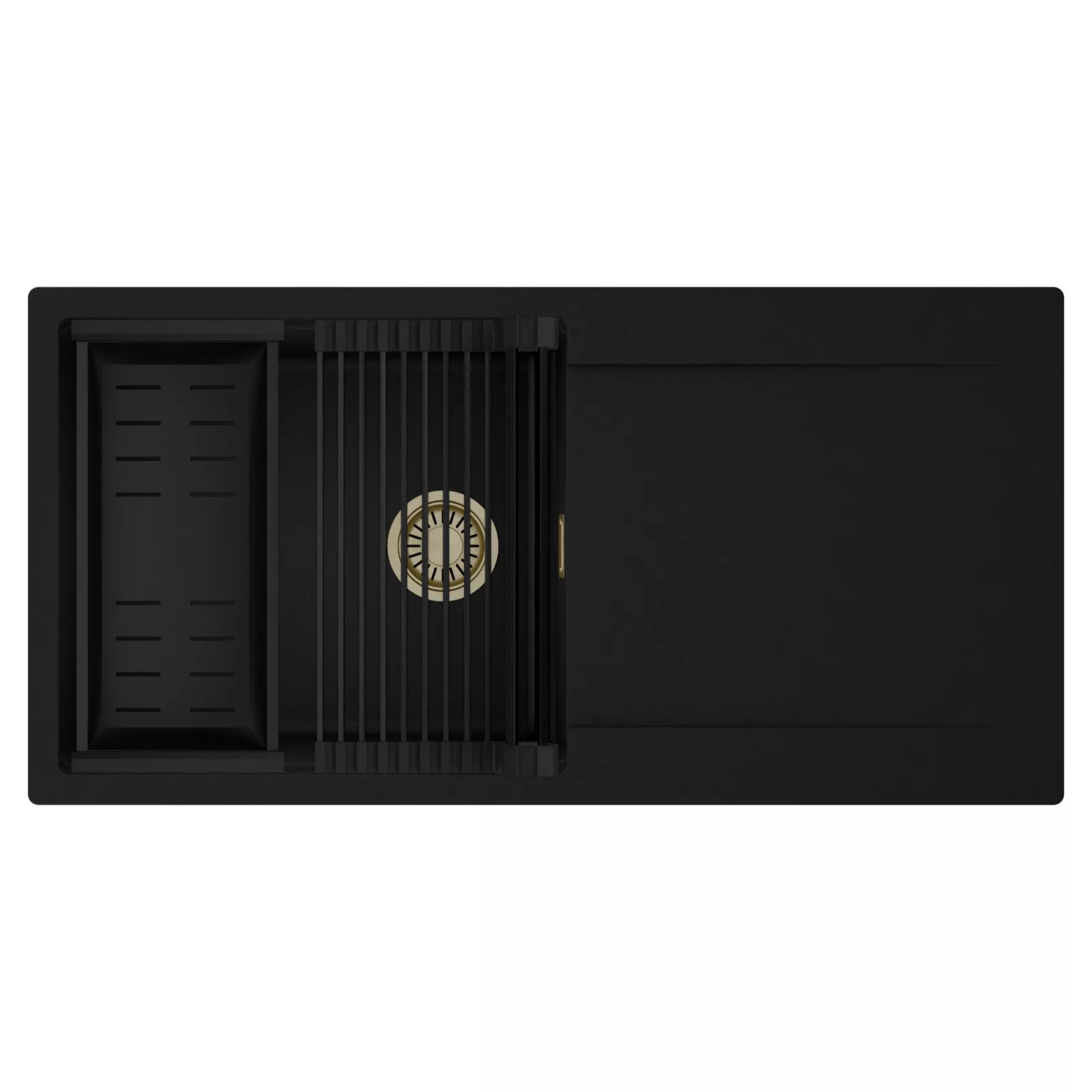 HD Onyx 100 egymedencés mosogatótálca szett, csepegtetőráccsal és kosárral, matt fekete