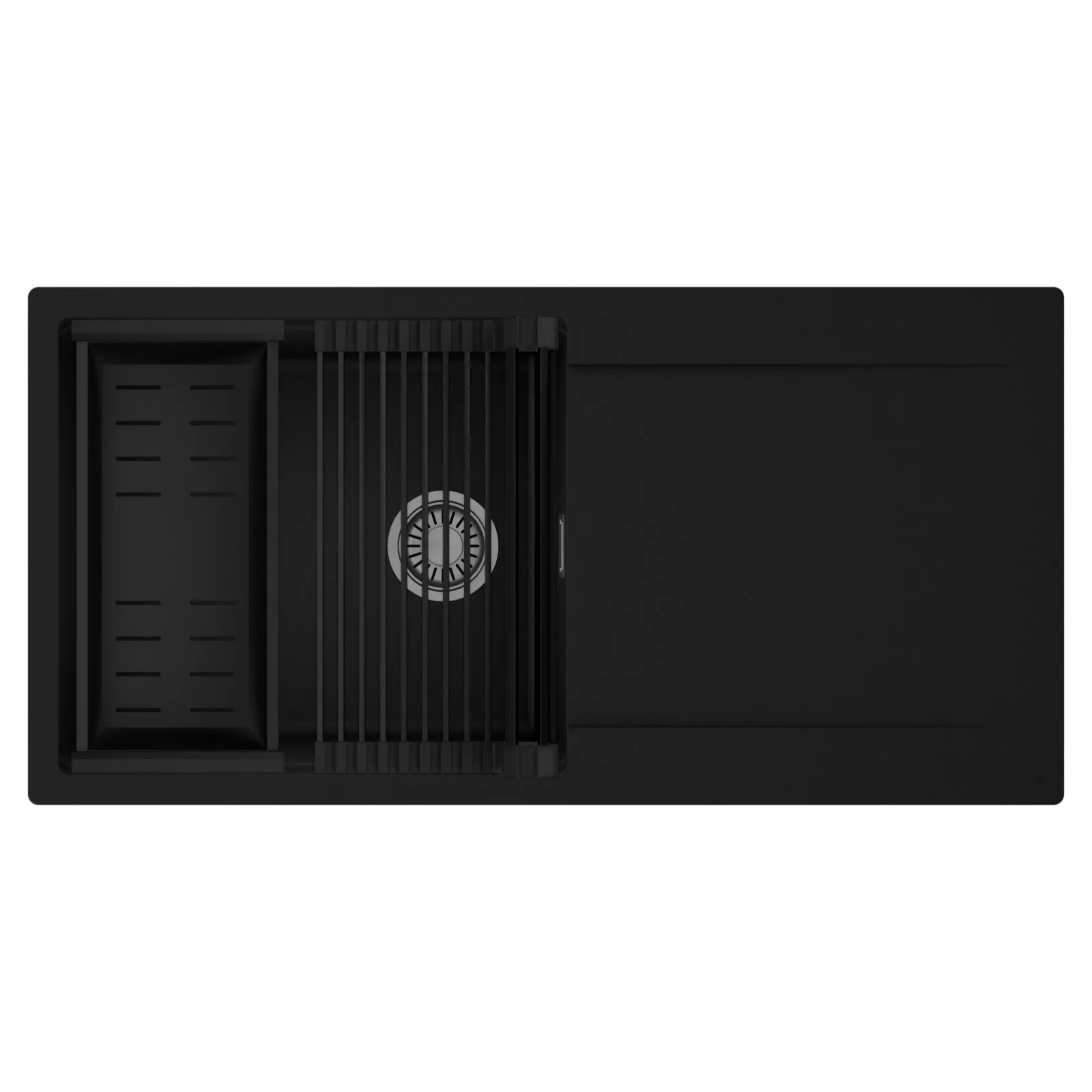 HD Onyx 100 egymedencés mosogatótálca szett, csepegtetőráccsal és kosárral, matt fekete