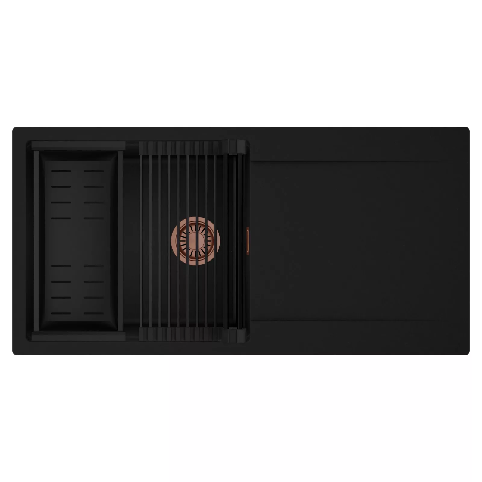 HD Onyx 100 egymedencés mosogatótálca szett, csepegtetőráccsal és kosárral, matt fekete