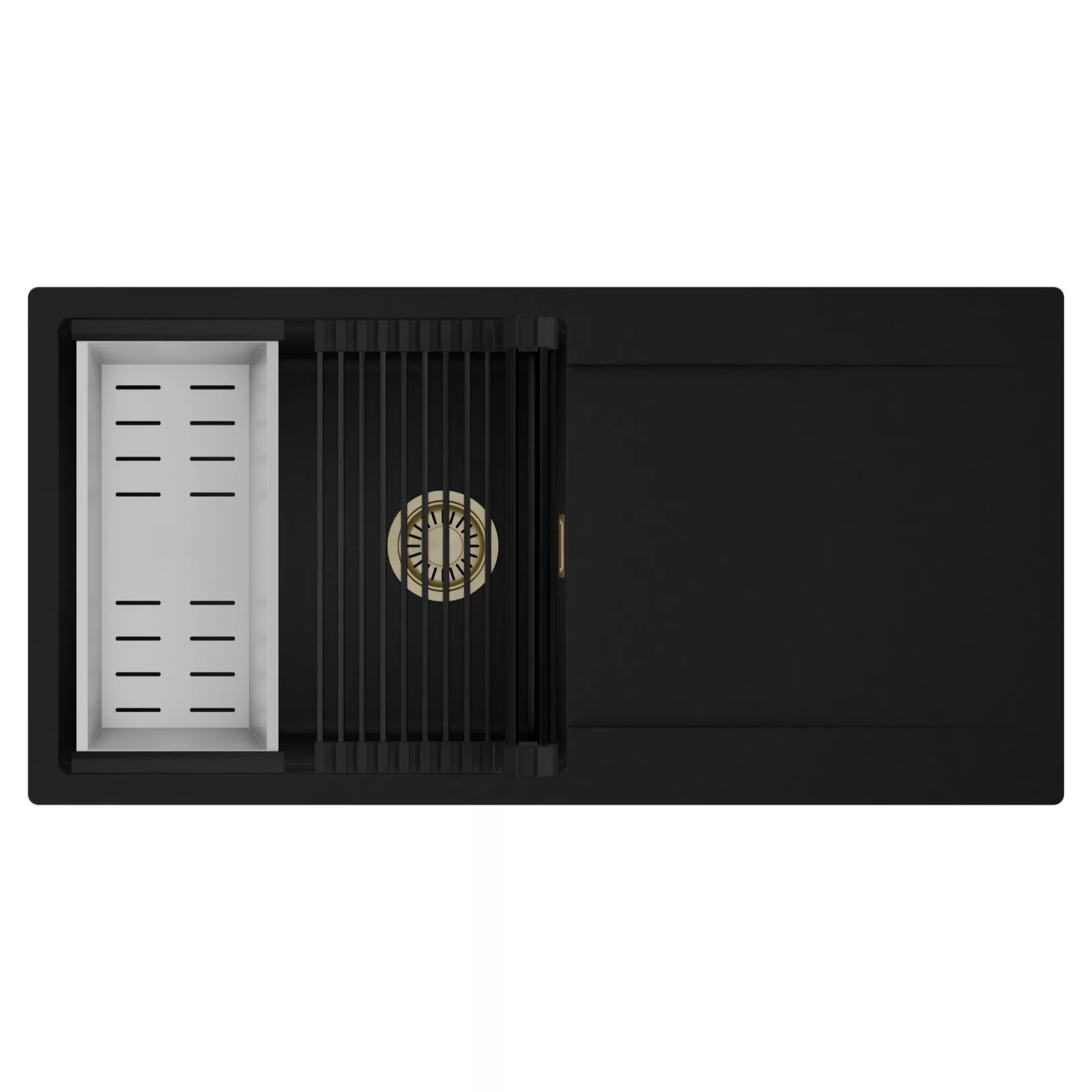 HD Onyx 100 egymedencés mosogatótálca szett, csepegtetőráccsal és kosárral, matt fekete