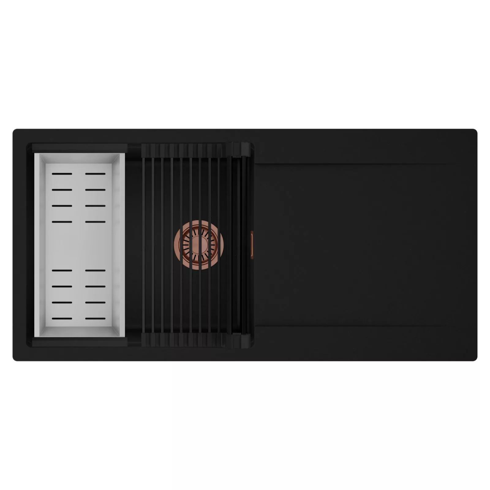 HD Onyx 100 egymedencés mosogatótálca szett, csepegtetőráccsal és kosárral, matt fekete