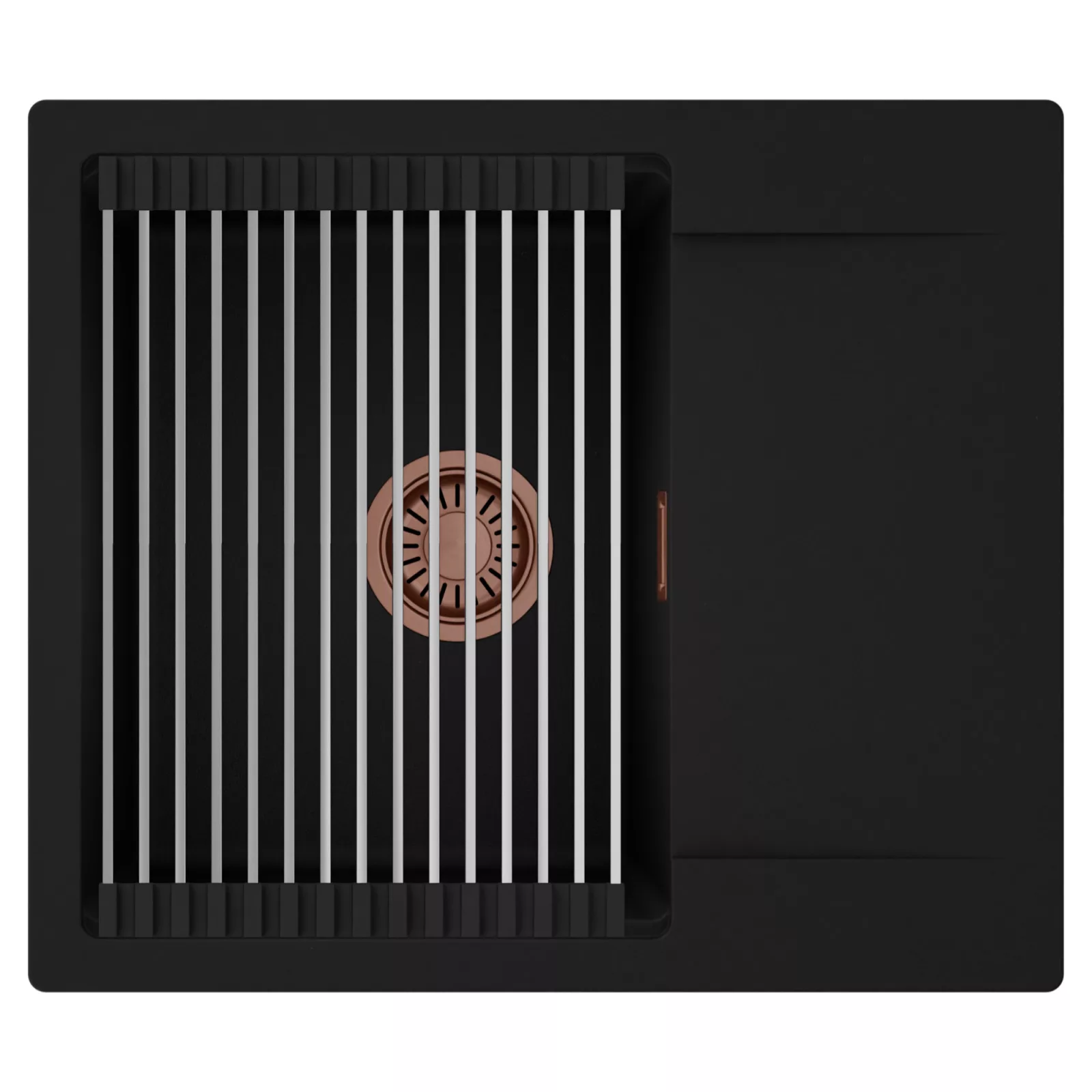 HD Onyx 58 egymedencés mosogatótálca szett, csepegtetőráccsal, matt fekete