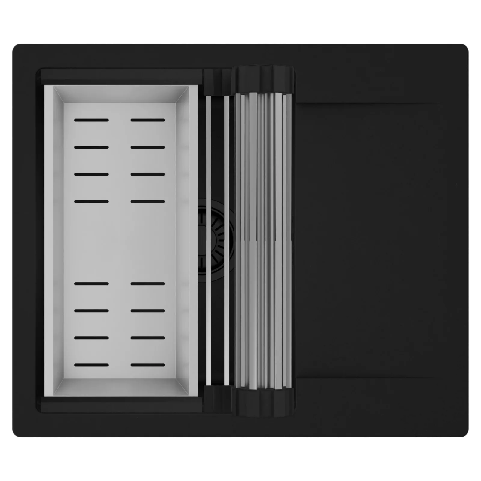 HD Onyx 58 egymedencés mosogatótálca szett, csepegtetőráccsal és kosárral, matt fekete