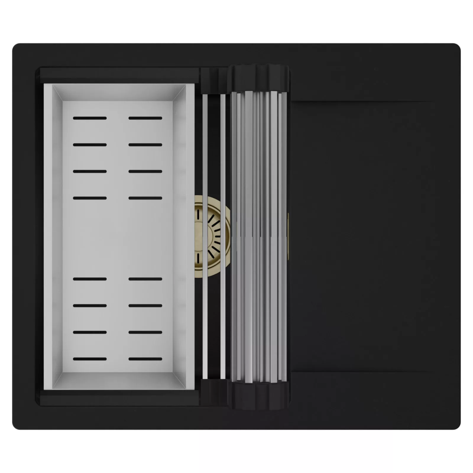 HD Onyx 58 egymedencés mosogatótálca szett, csepegtetőráccsal és kosárral, matt fekete
