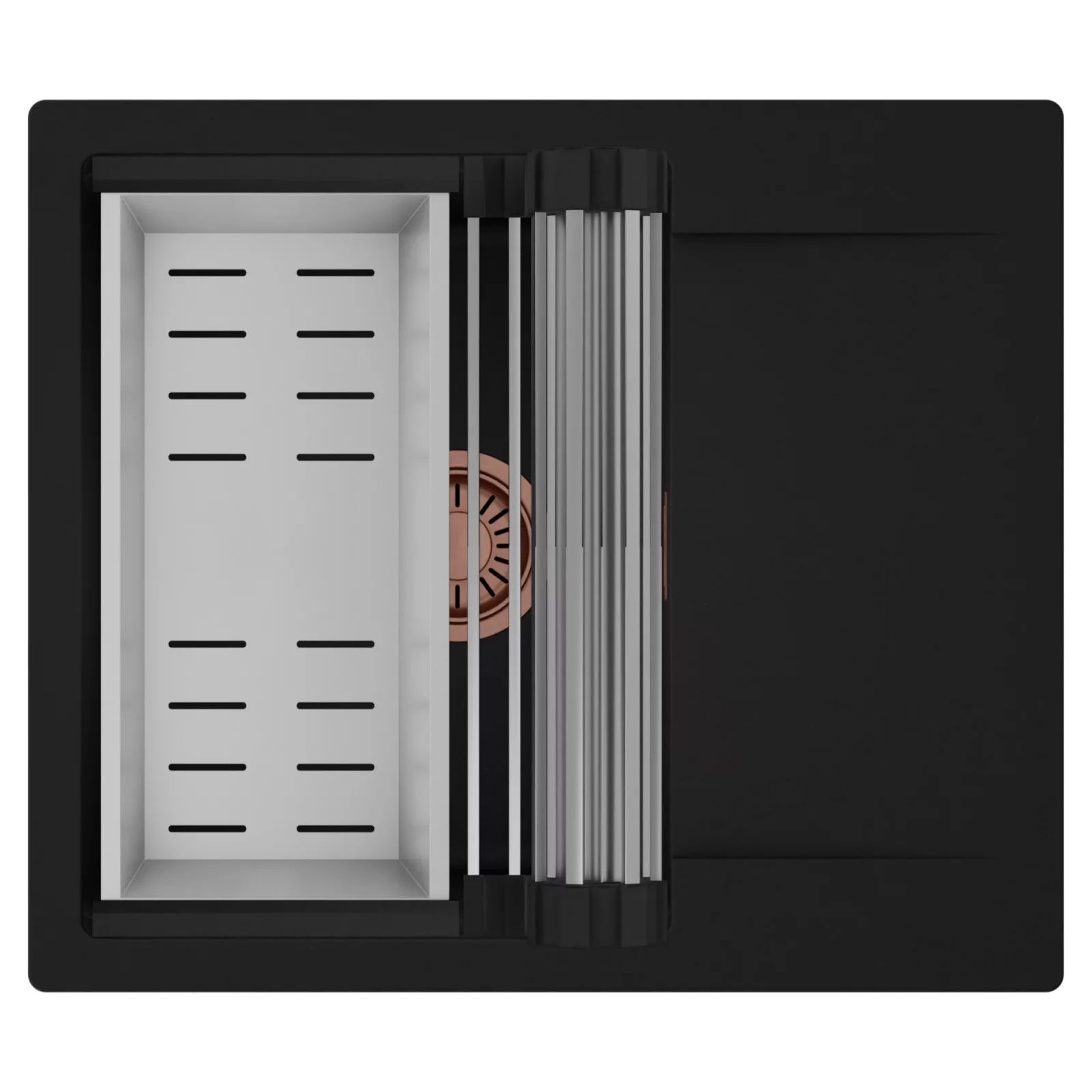 HD Onyx 58 egymedencés mosogatótálca szett, csepegtetőráccsal és kosárral, matt fekete
