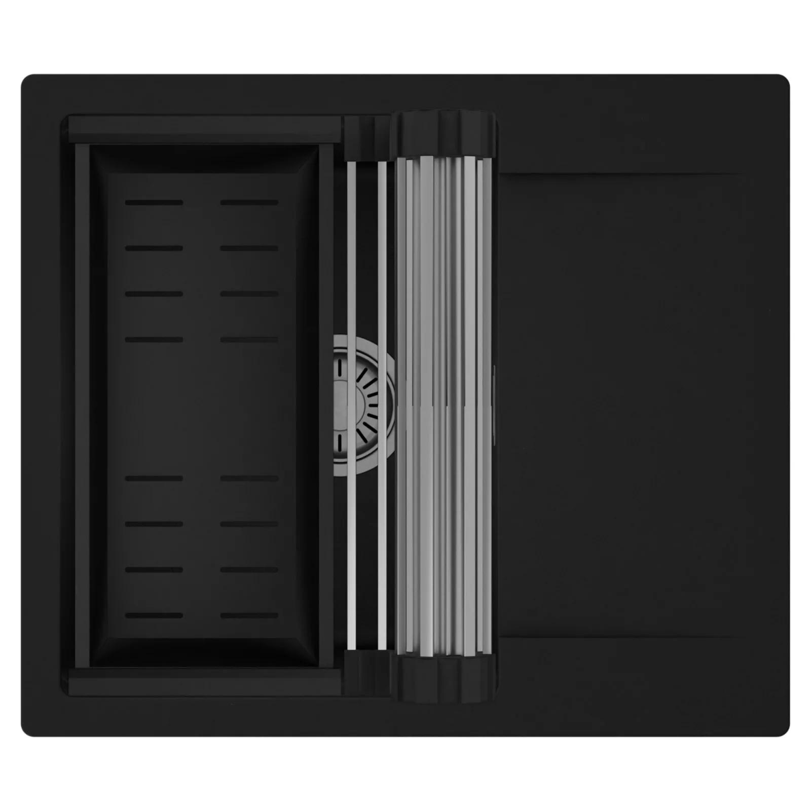 HD Onyx 58 egymedencés mosogatótálca szett, csepegtetőráccsal és kosárral, matt fekete