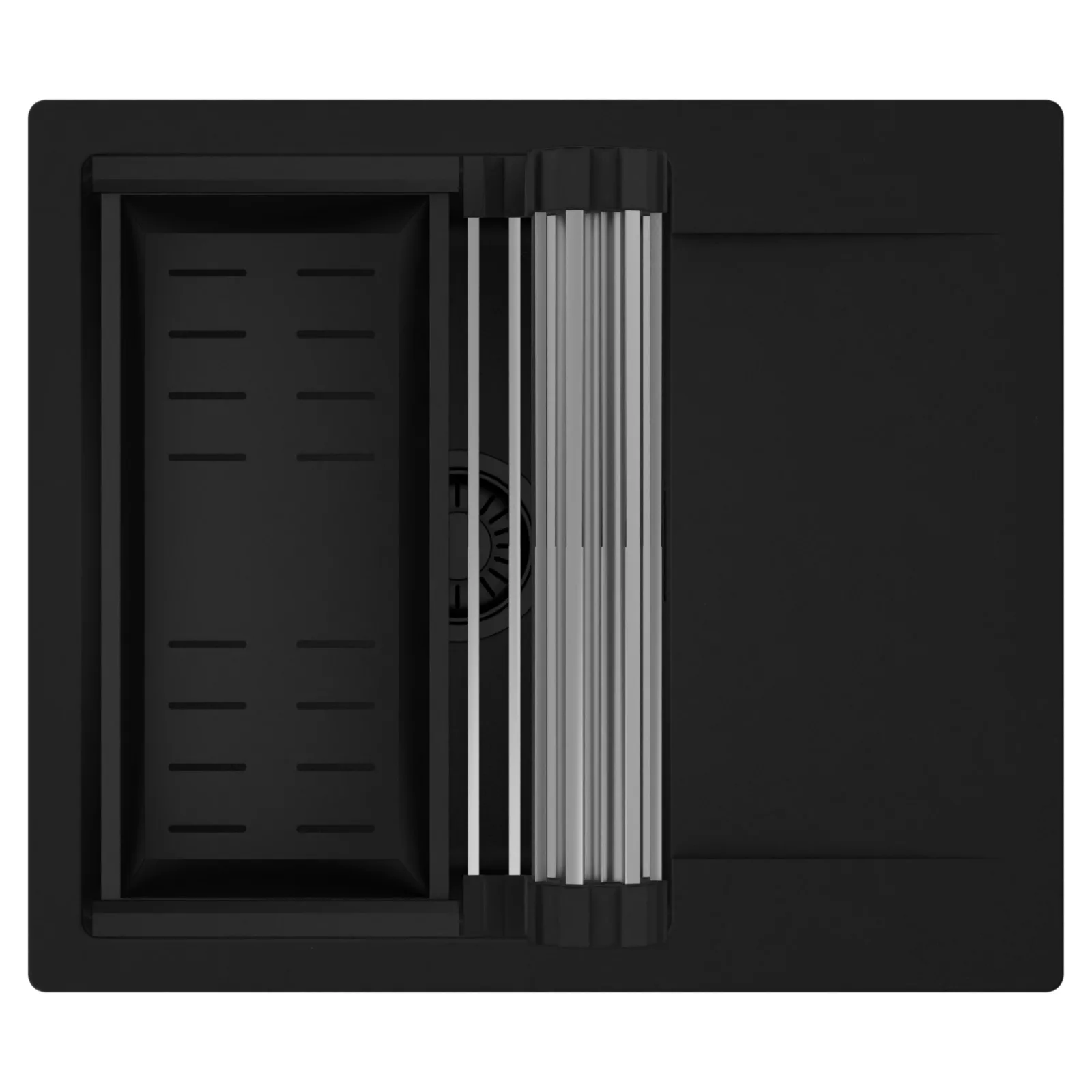 HD Onyx 58 egymedencés mosogatótálca szett, csepegtetőráccsal és kosárral, matt fekete