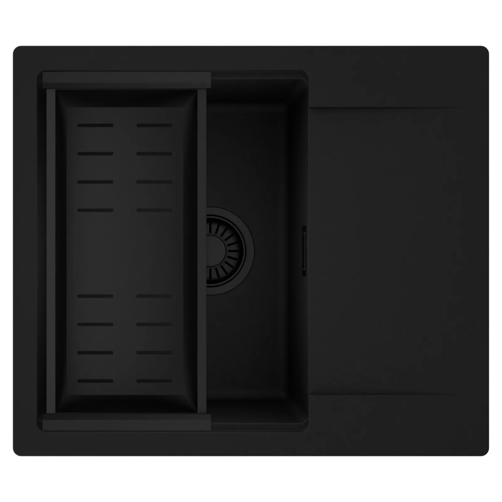 HD Onyx 58 egymedencés mosogatótálca szett, csepegtetőkosárral, matt fekete
