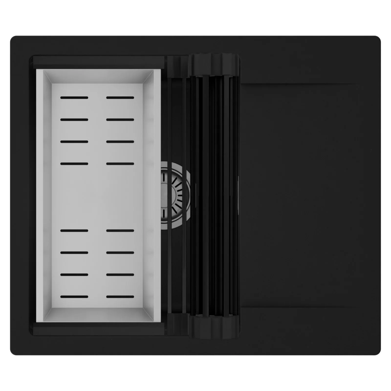 HD Onyx 58 egymedencés mosogatótálca szett, csepegtetőráccsal és kosárral, matt fekete