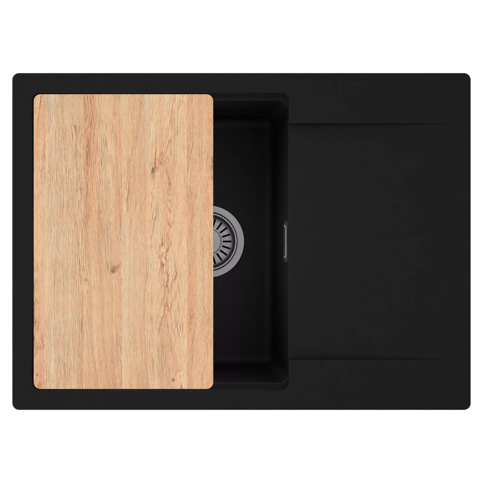 HD Onyx 68-XL egymedencés mosogatótálca szett, vágódeszkával, matt fekete