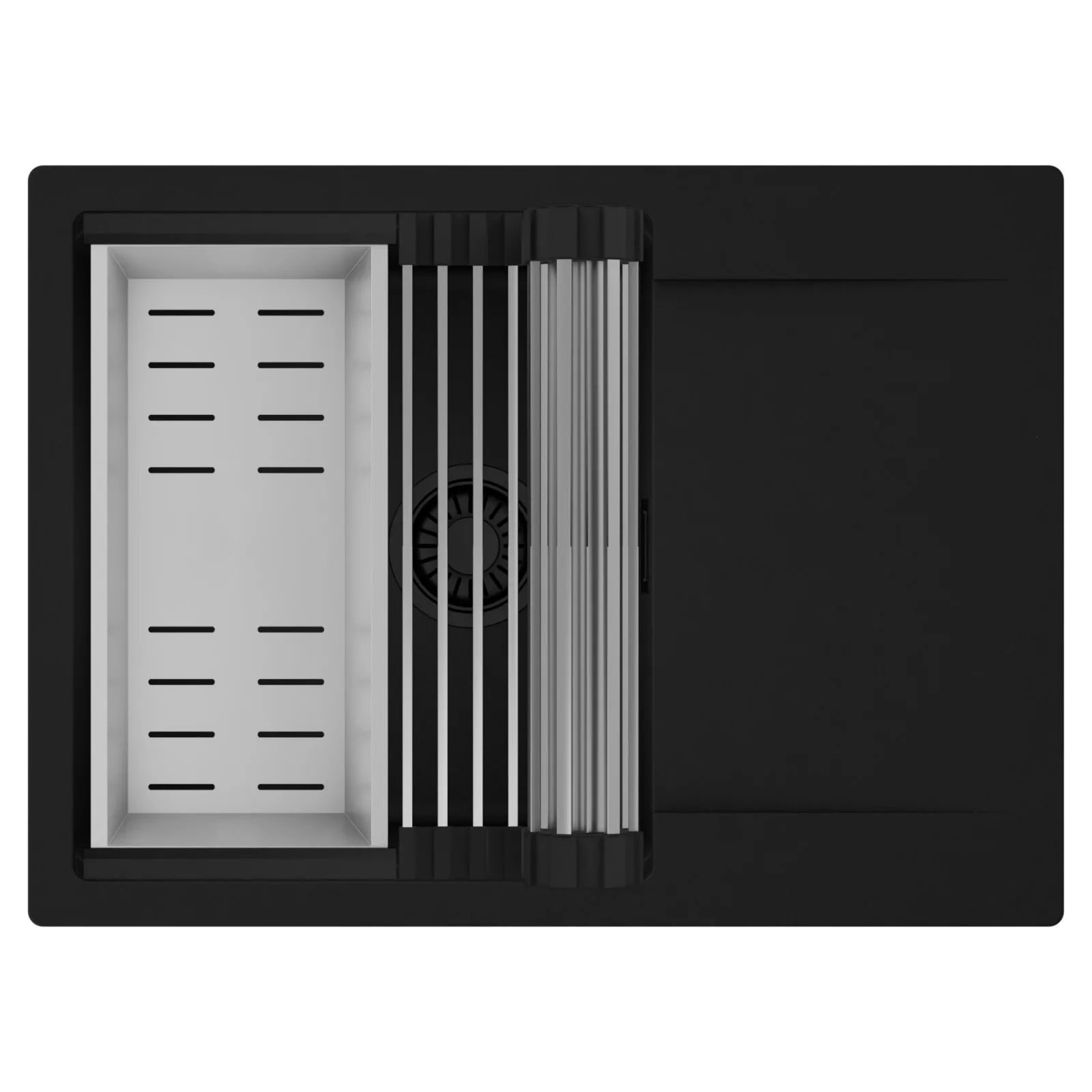 HD Onyx 68-XL egymedencés mosogatótálca szett, csepegtetőráccsal és kosárral, matt fekete