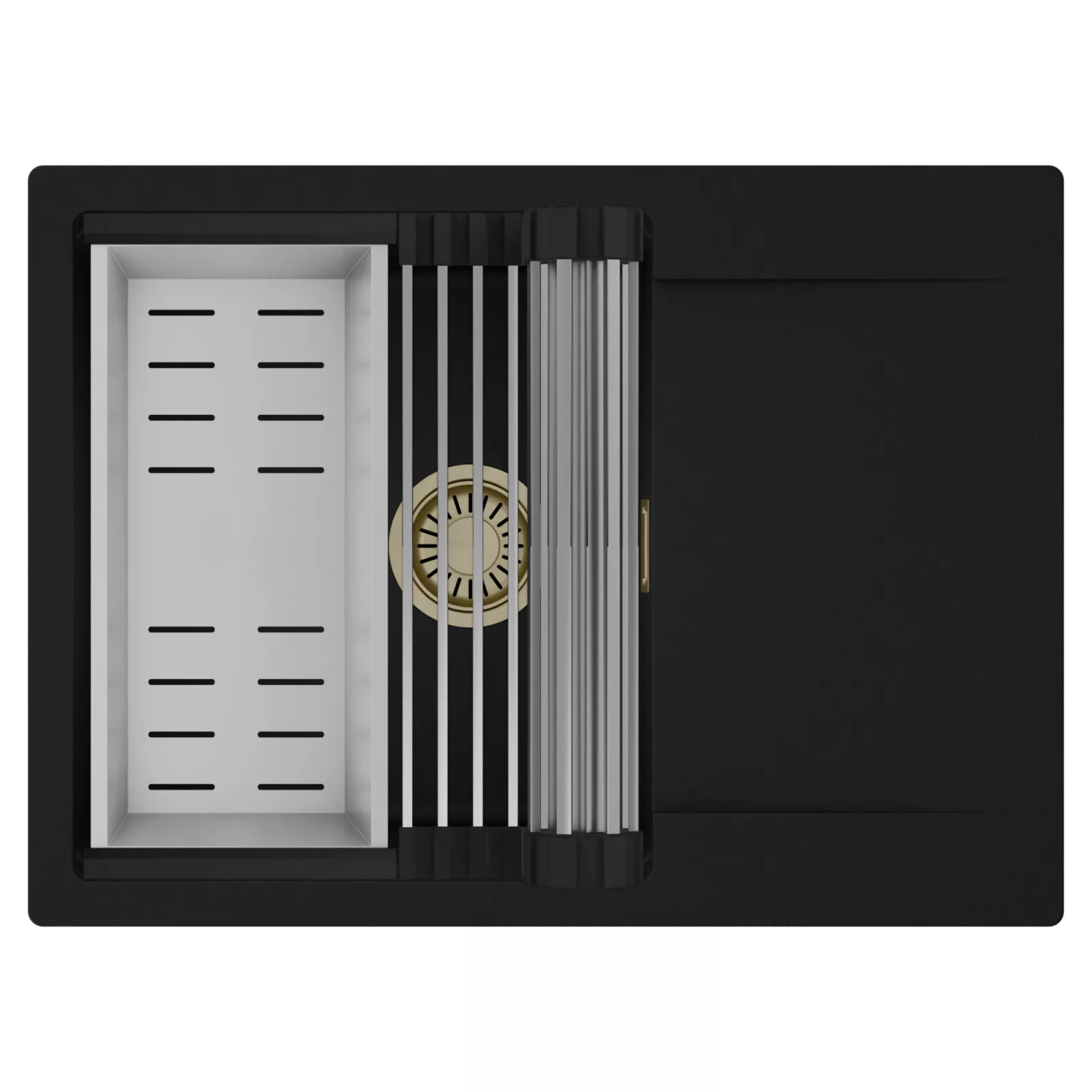 HD Onyx 68-XL egymedencés mosogatótálca szett, csepegtetőráccsal és kosárral, matt fekete