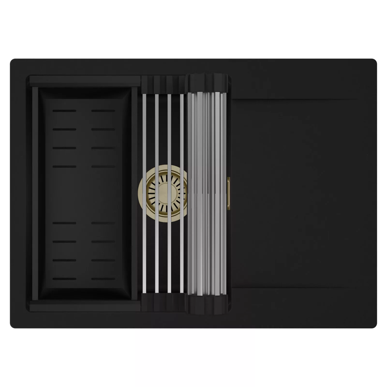 HD Onyx 68-XL egymedencés mosogatótálca szett, csepegtetőráccsal és kosárral, matt fekete