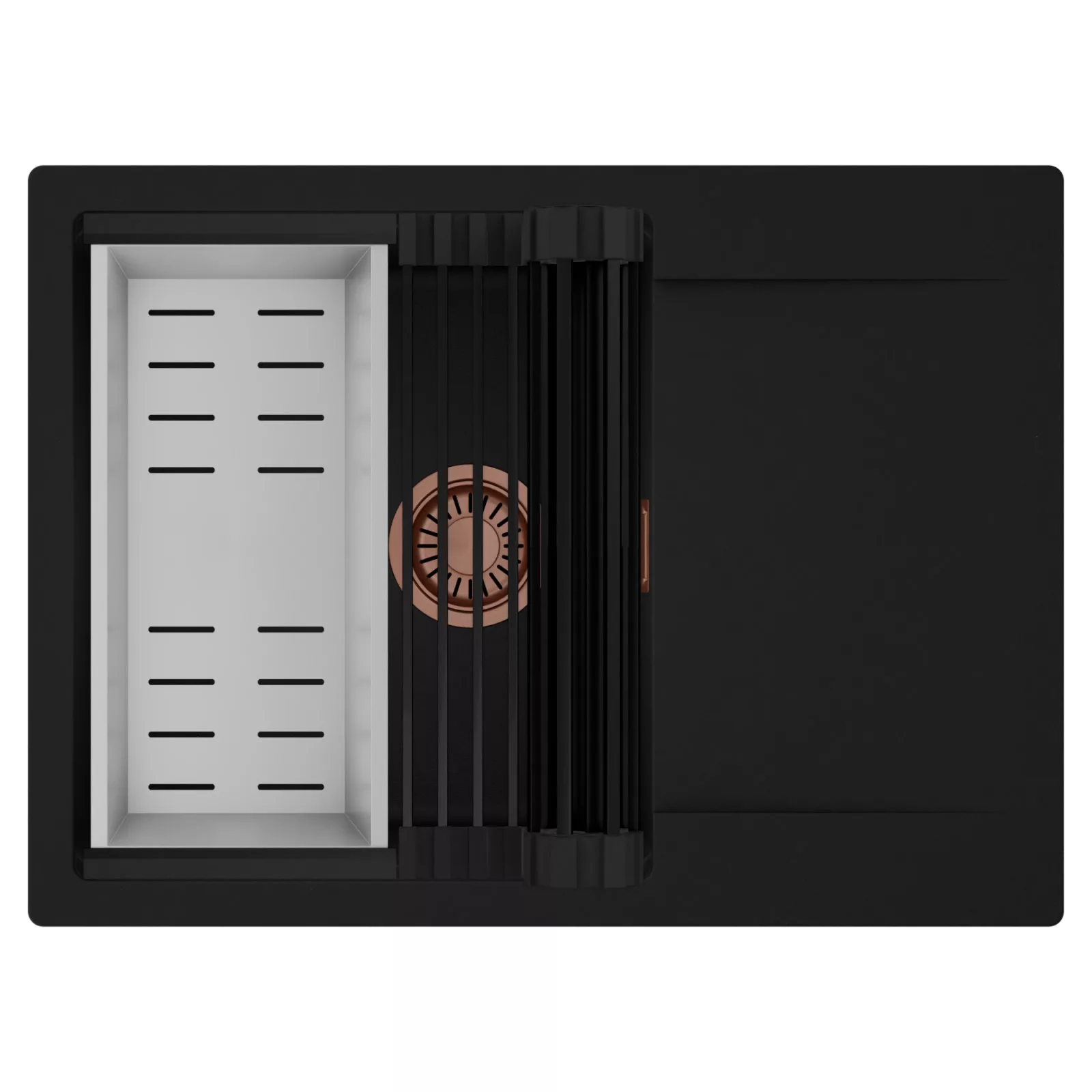 HD Onyx 68-XL egymedencés mosogatótálca szett, csepegtetőráccsal és kosárral, matt fekete