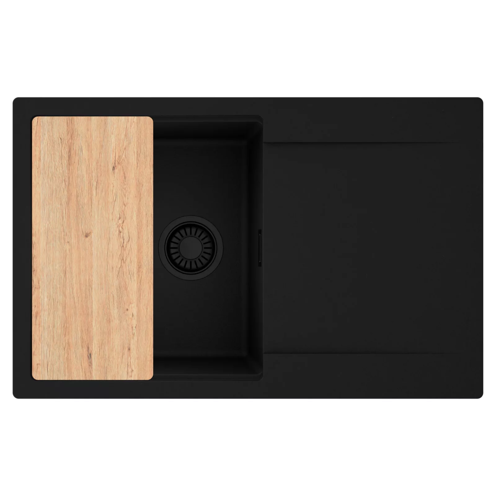 HD Onyx 78 egymedencés mosogatótálca szett, vágódeszkával, matt fekete
