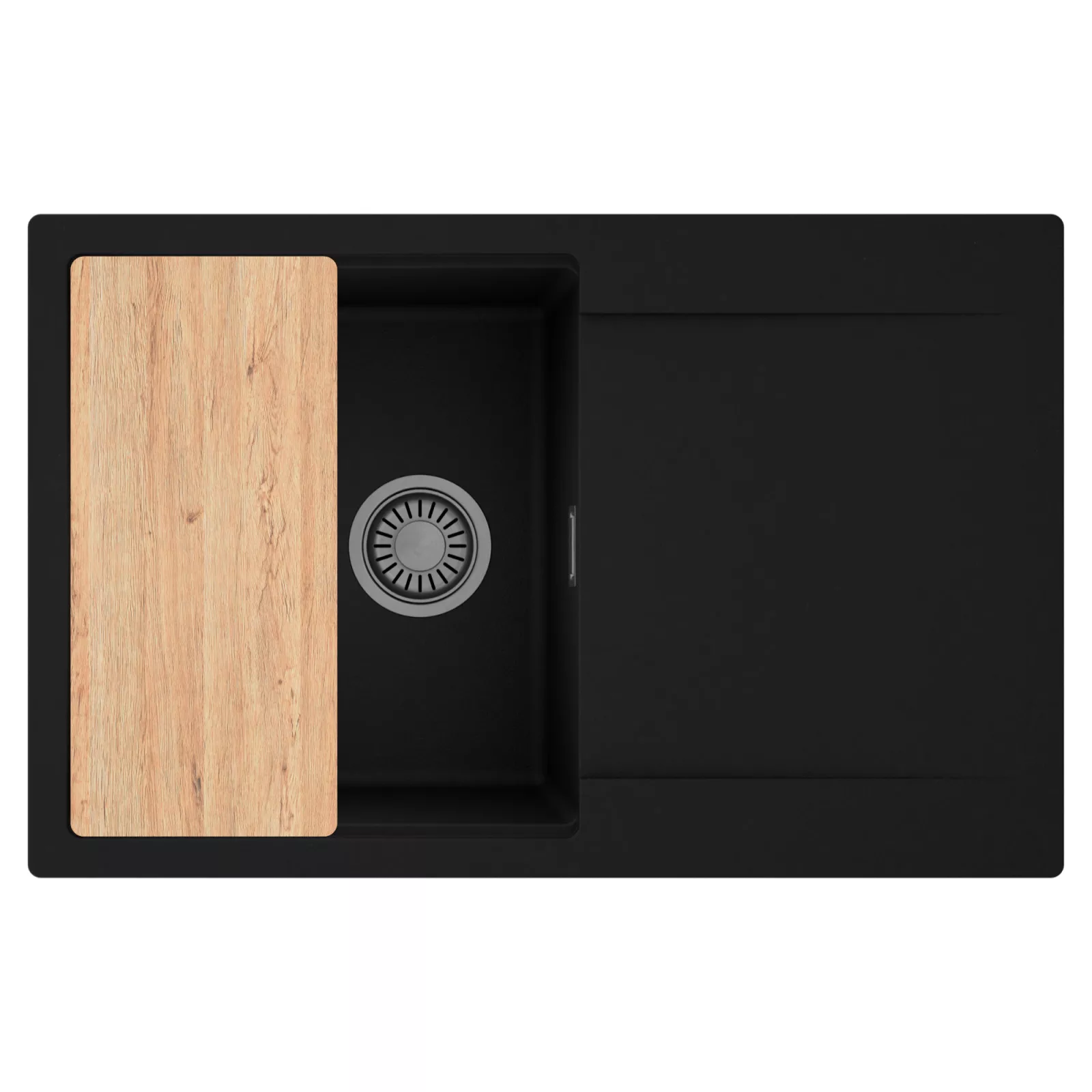 HD Onyx 78 egymedencés mosogatótálca szett, vágódeszkával, matt fekete