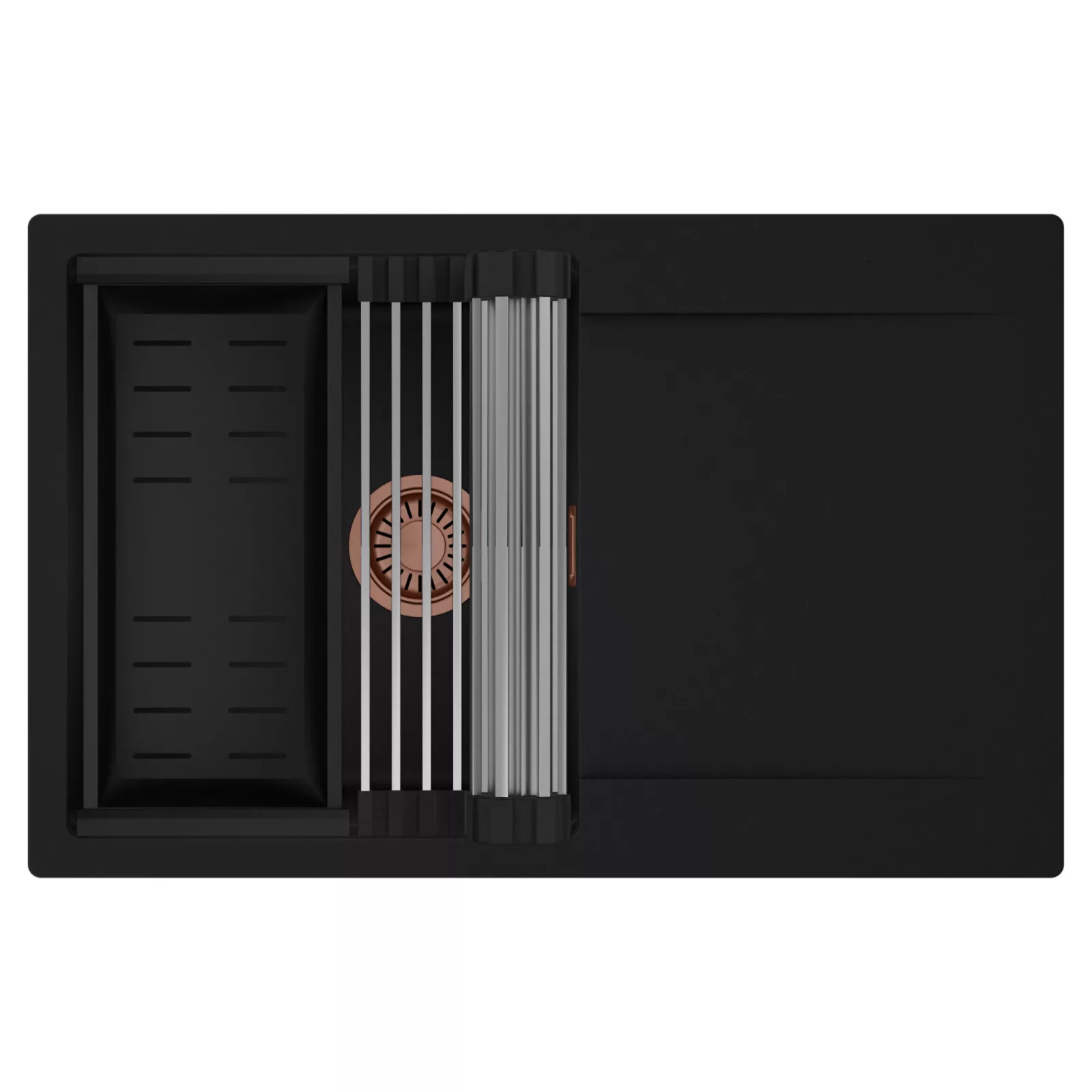 HD Onyx 78 egymedencés mosogatótálca szett, csepegtetőráccsal és kosárral, matt fekete