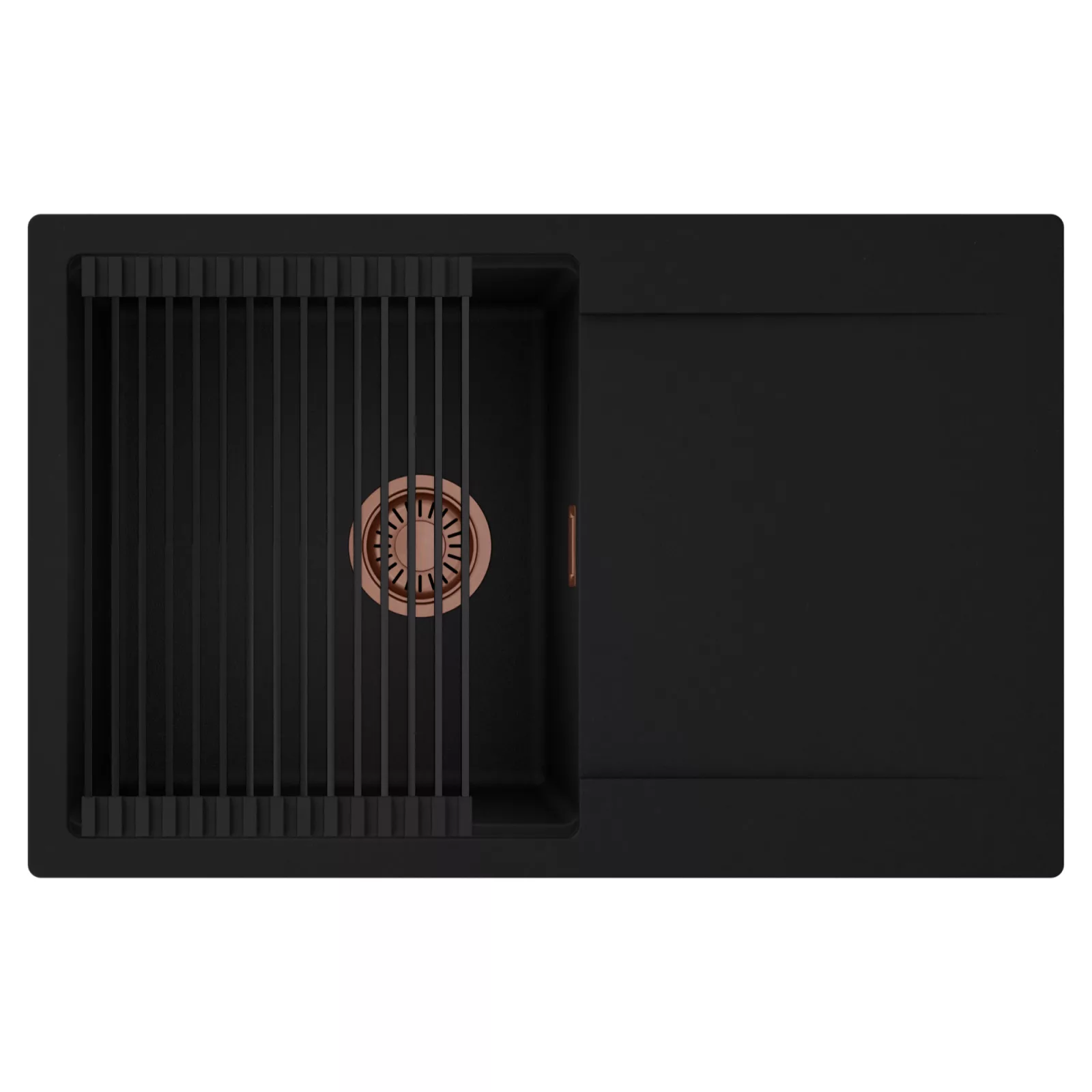 HD Onyx 78 egymedencés mosogatótálca szett, csepegtetőráccsal, matt fekete