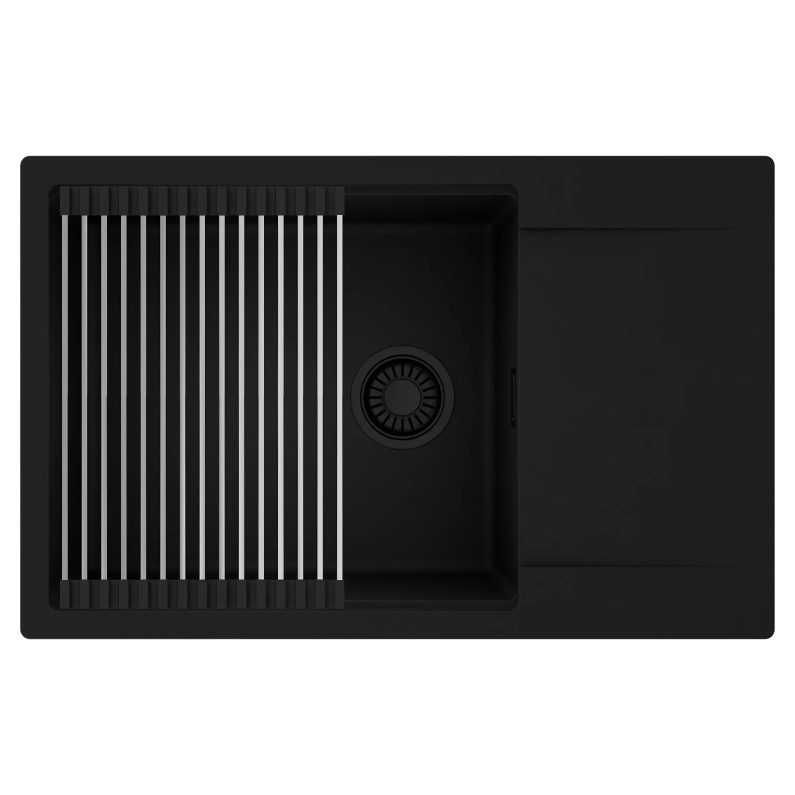 HD Onyx 78-XL egymedencés mosogatótálca szett, csepegtetőráccsal, matt fekete