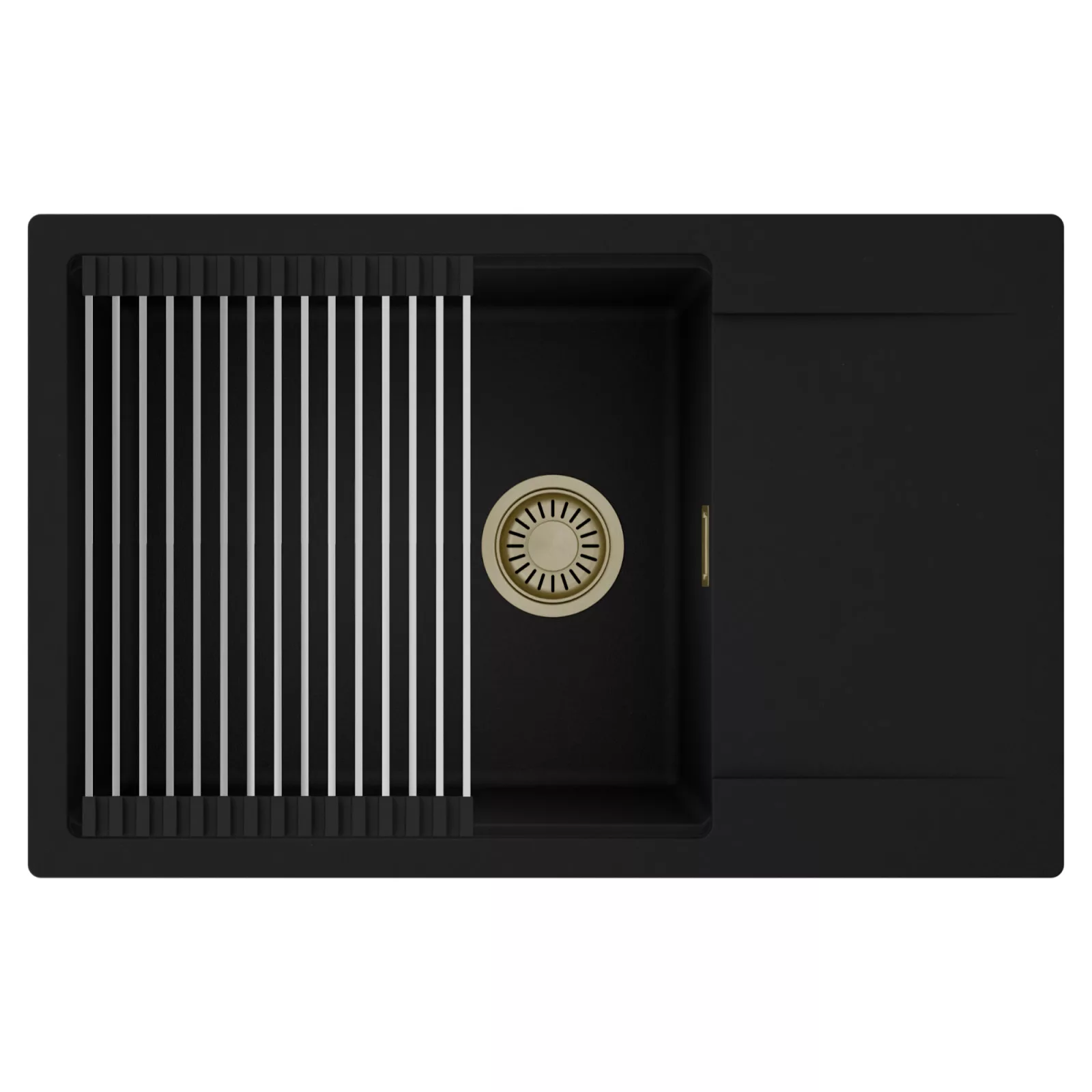 HD Onyx 78-XL egymedencés mosogatótálca szett, csepegtetőráccsal, matt fekete