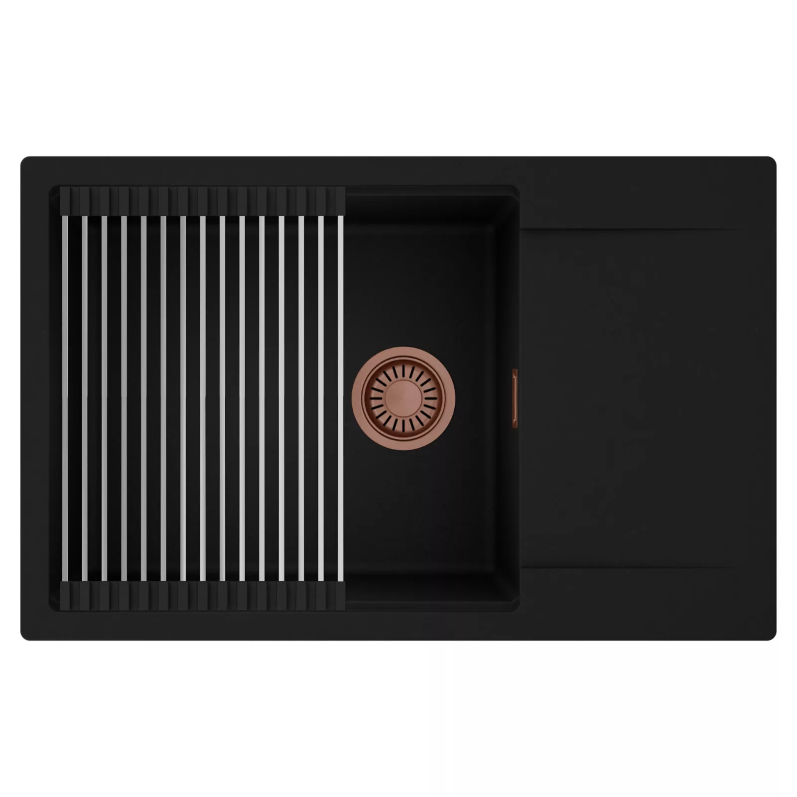 HD Onyx 78-XL egymedencés mosogatótálca szett, csepegtetőráccsal, matt fekete