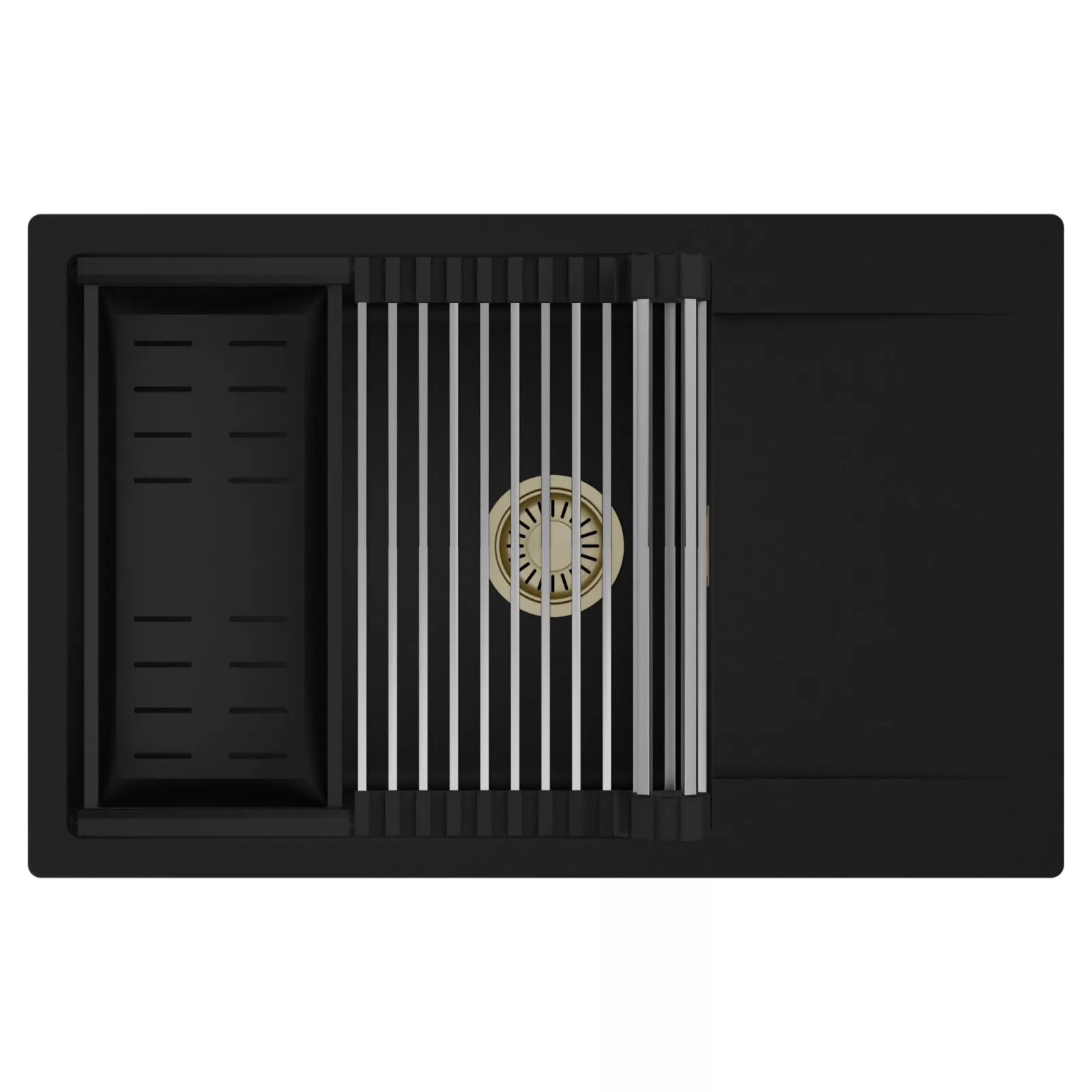 HD Onyx 78-XL egymedencés mosogatótálca szett, csepegtetőráccsal és kosárral, matt fekete