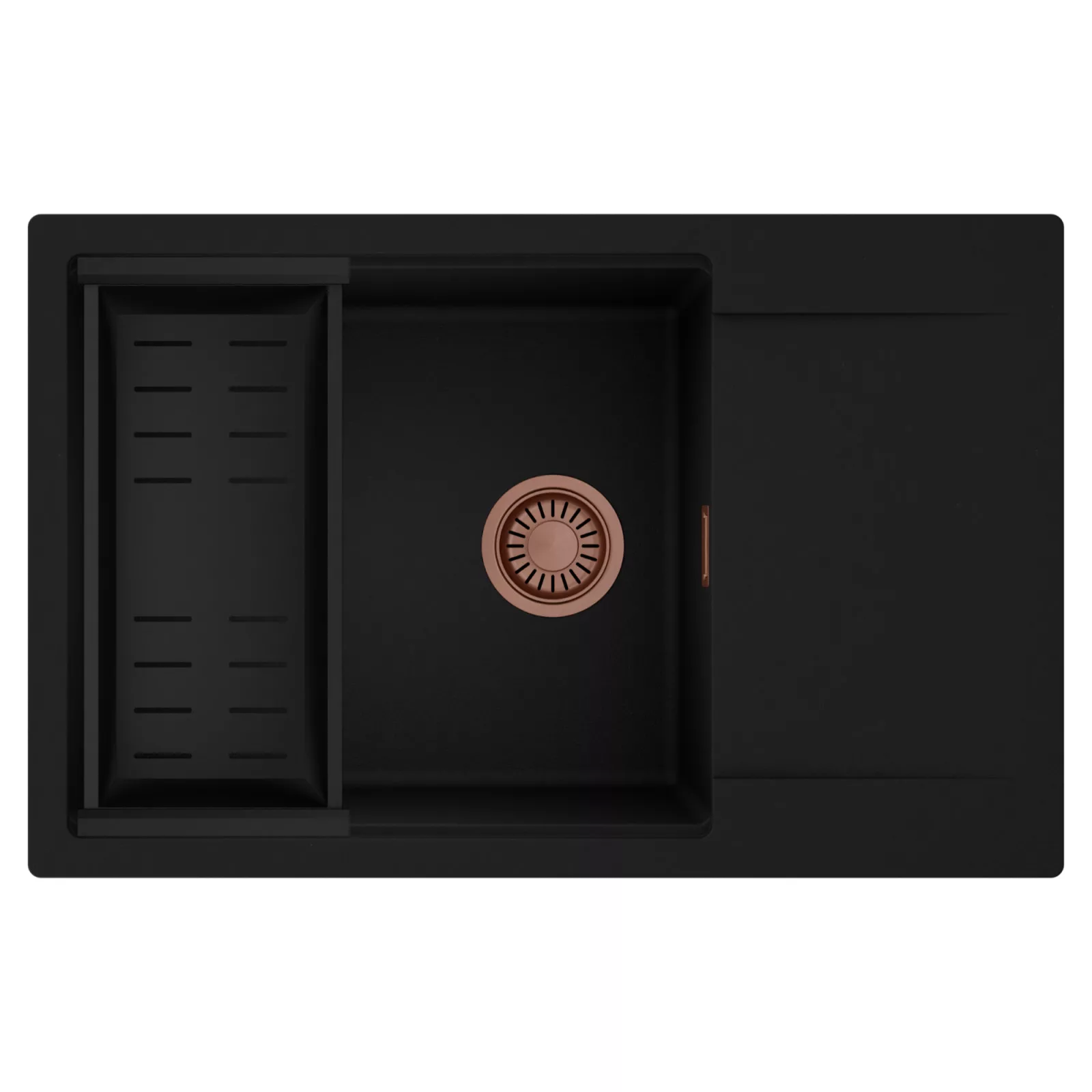HD Onyx 78-XL egymedencés mosogatótálca szett, csepegtetőkosárral, matt fekete