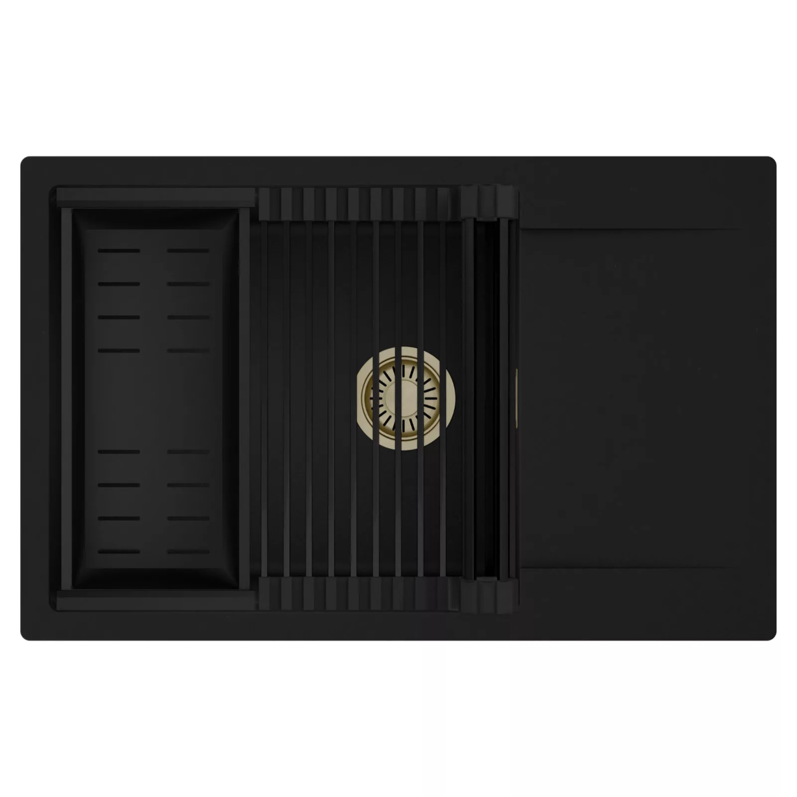 HD Onyx 78-XL egymedencés mosogatótálca szett, csepegtetőráccsal és kosárral, matt fekete