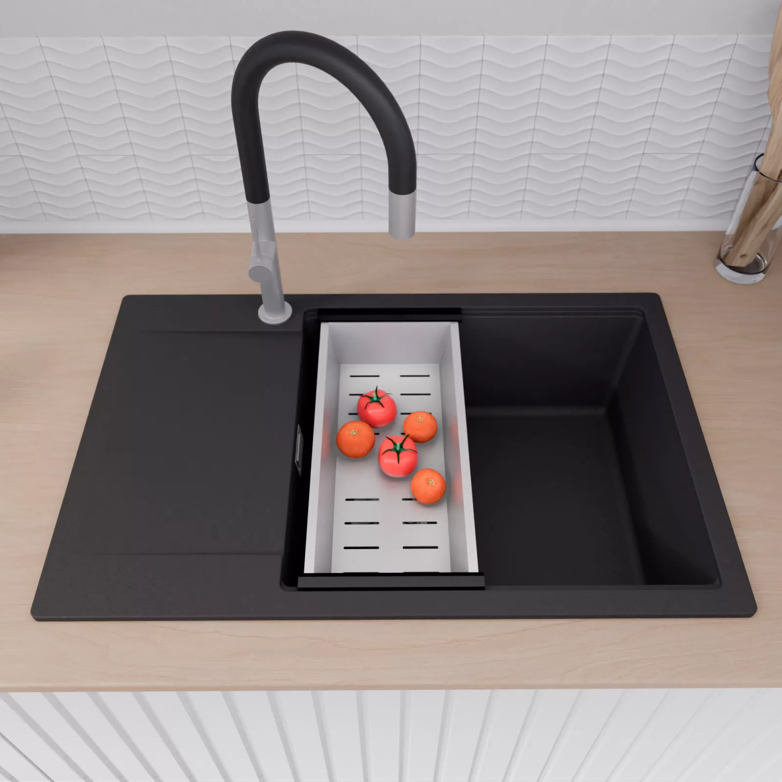 A mosogató prémium minőségű gránit kompozitból készült. Letisztult megjelenése mellett rendkívül praktikus, így bármilyen stílusú konyhába harmonikusan illeszkedik. A strapabíró gránit anyag hosszú távon is megbízható használatot garantál.