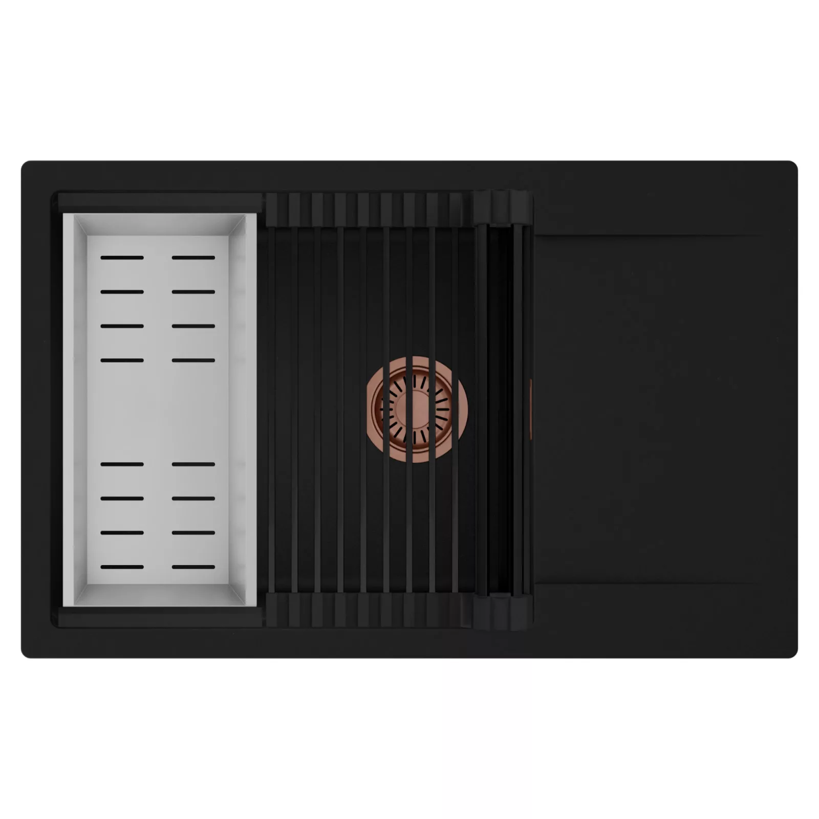 HD Onyx 78-XL egymedencés mosogatótálca szett, csepegtetőráccsal és kosárral, matt fekete
