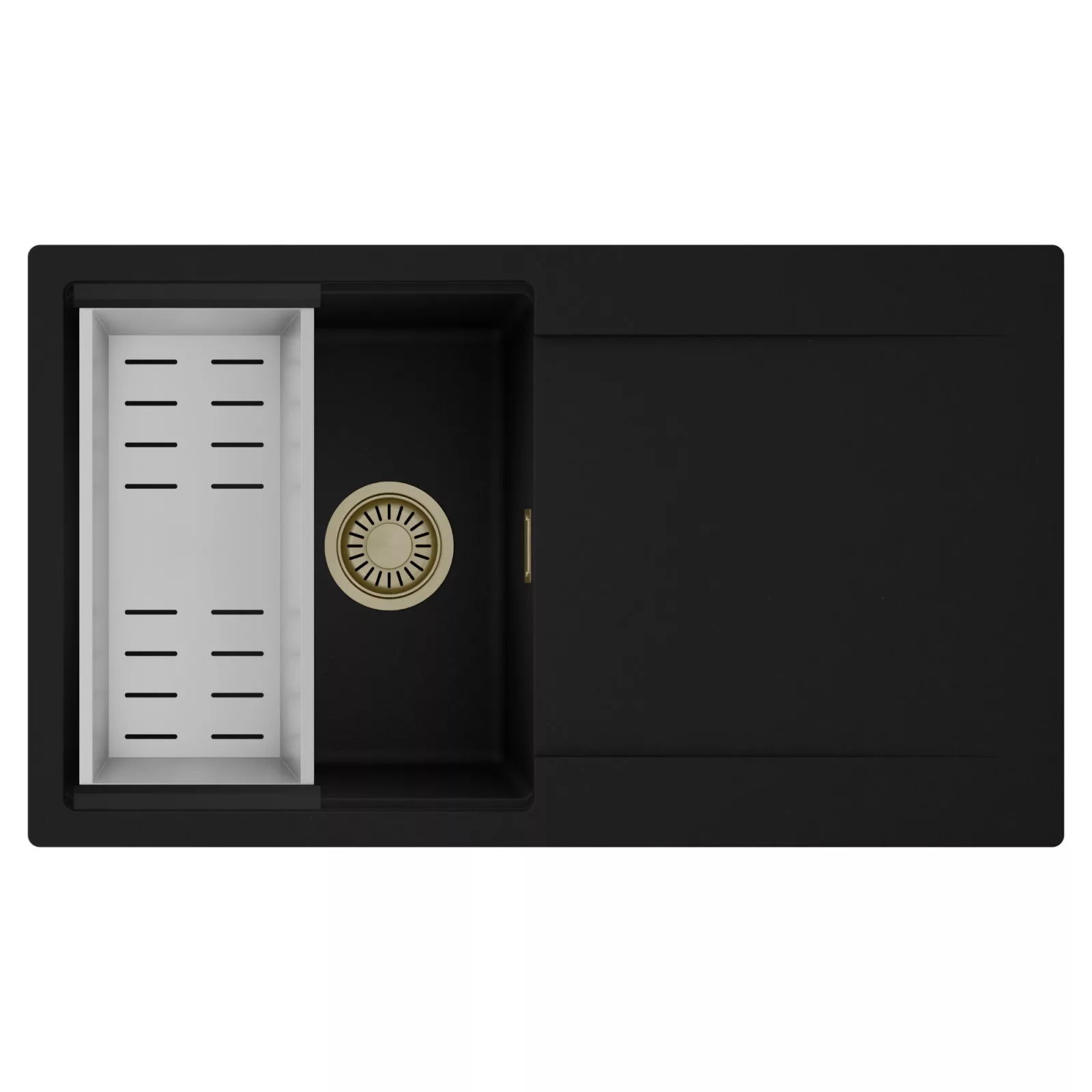 HD Onyx 86 egymedencés mosogatótálca szett, csepegtetőkosárral, matt fekete