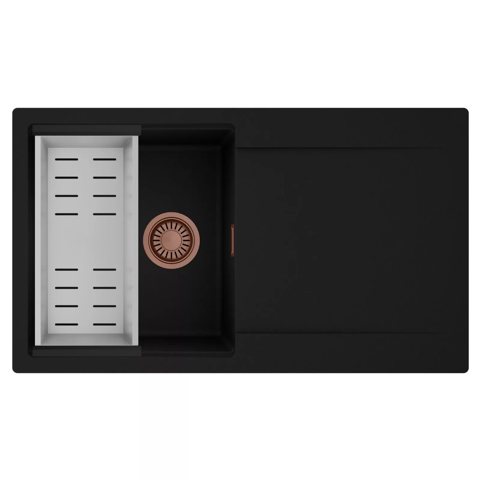 HD Onyx 86 egymedencés mosogatótálca szett, csepegtetőkosárral, matt fekete