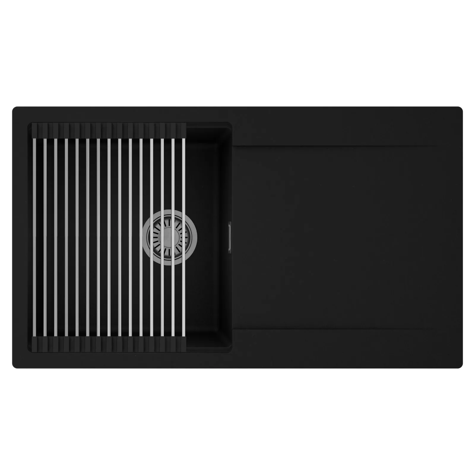 HD Onyx 86 egymedencés mosogatótálca szett, csepegtetőráccsal, matt fekete