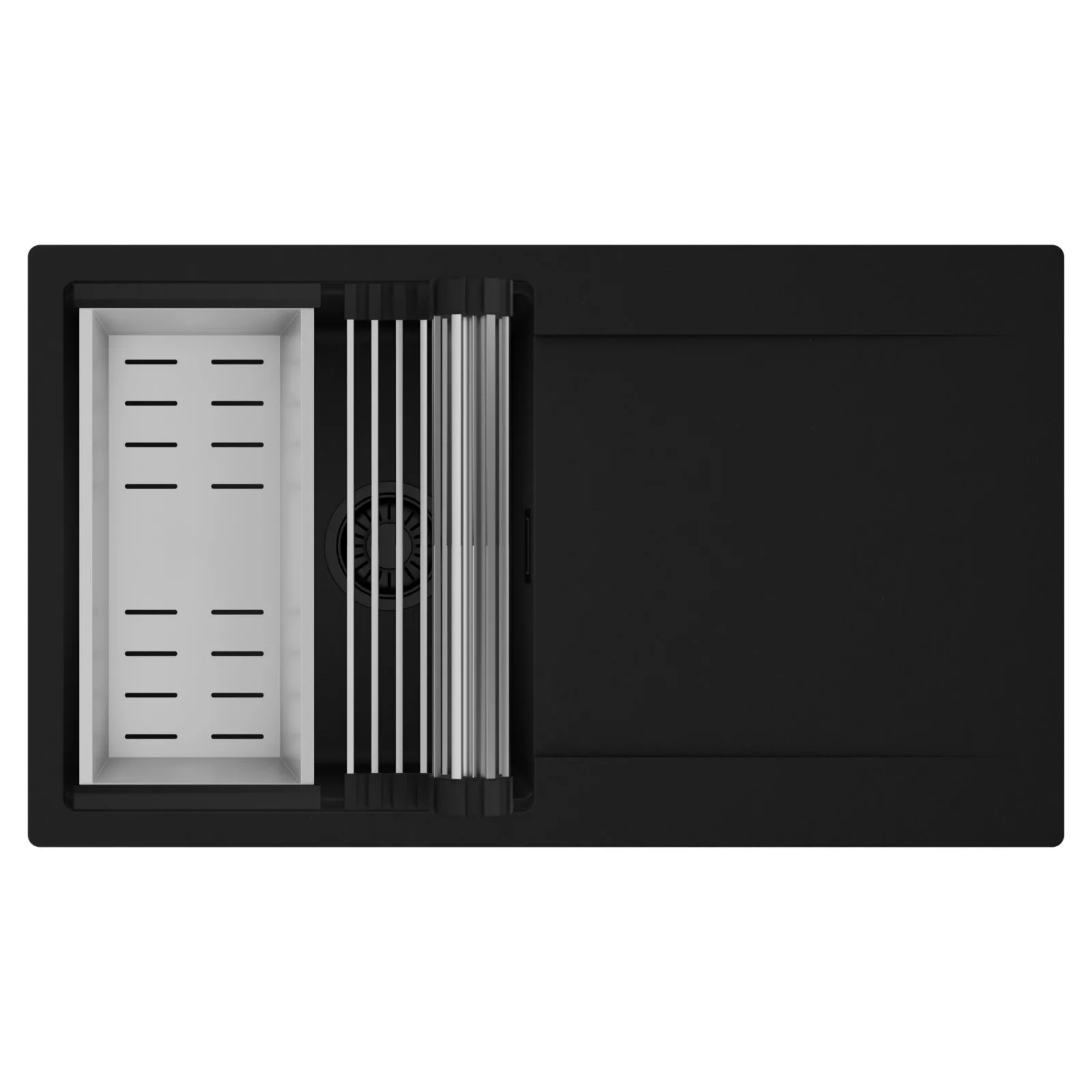 HD Onyx 86 egymedencés mosogatótálca szett, csepegtetőráccsal és kosárral, matt fekete